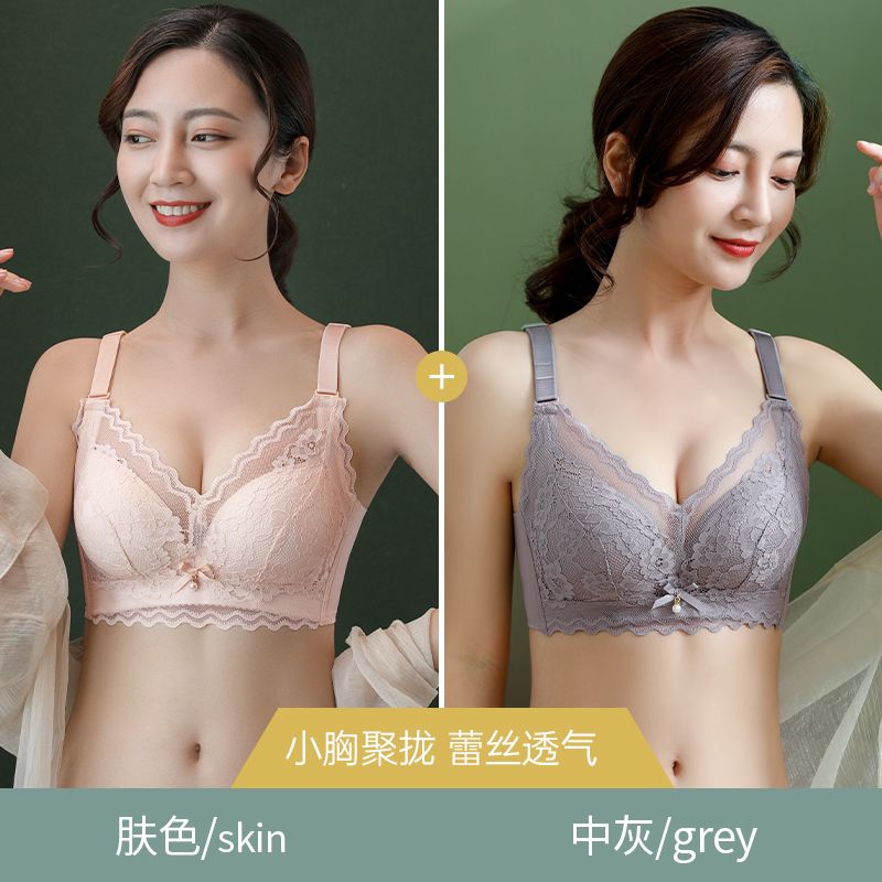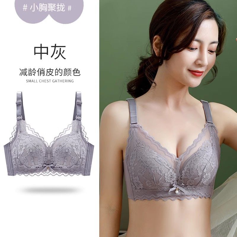 都市丽人性感蕾丝内衣女小胸聚拢收副乳防下垂调整型显大中厚文胸