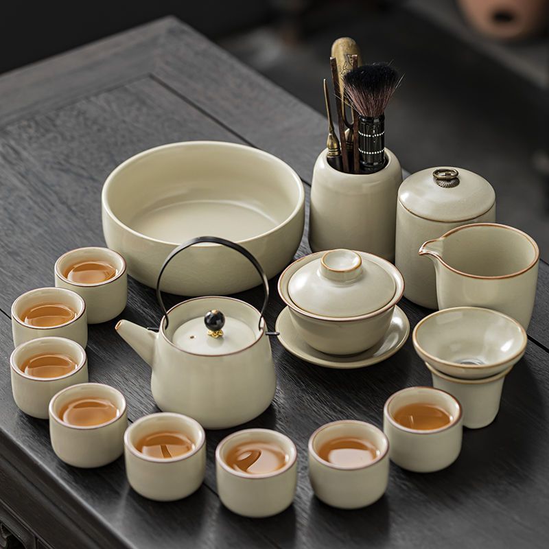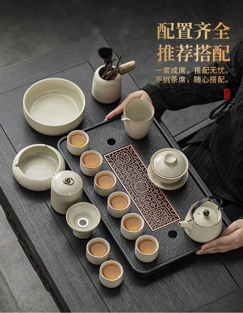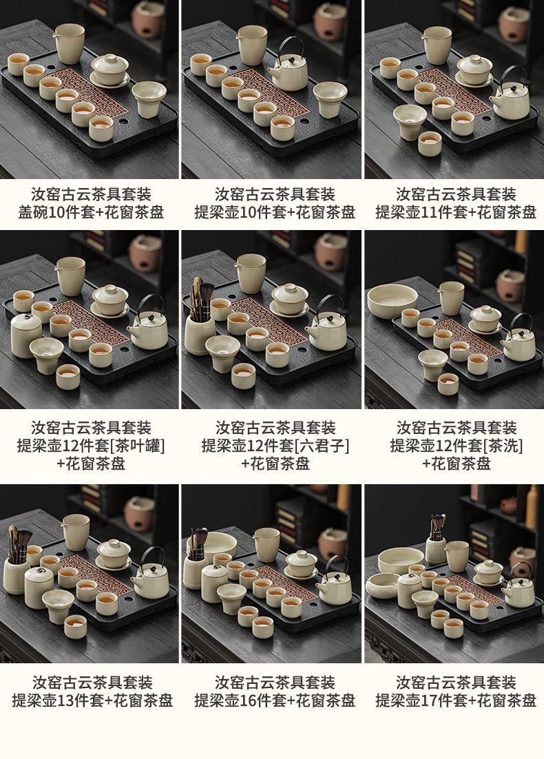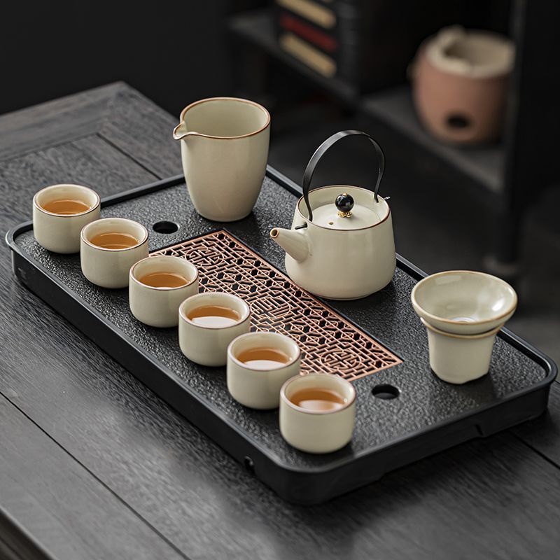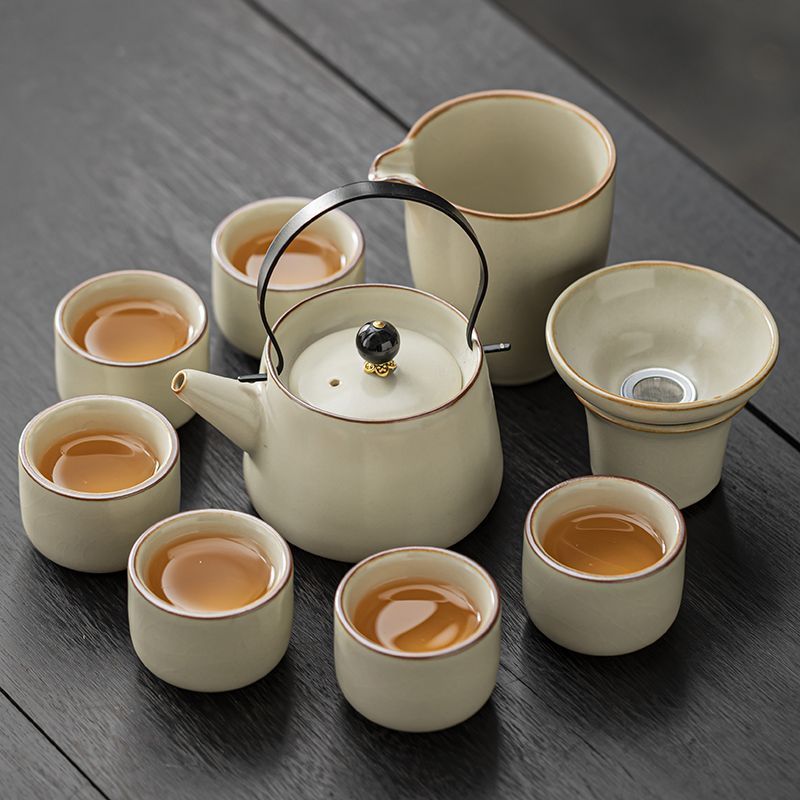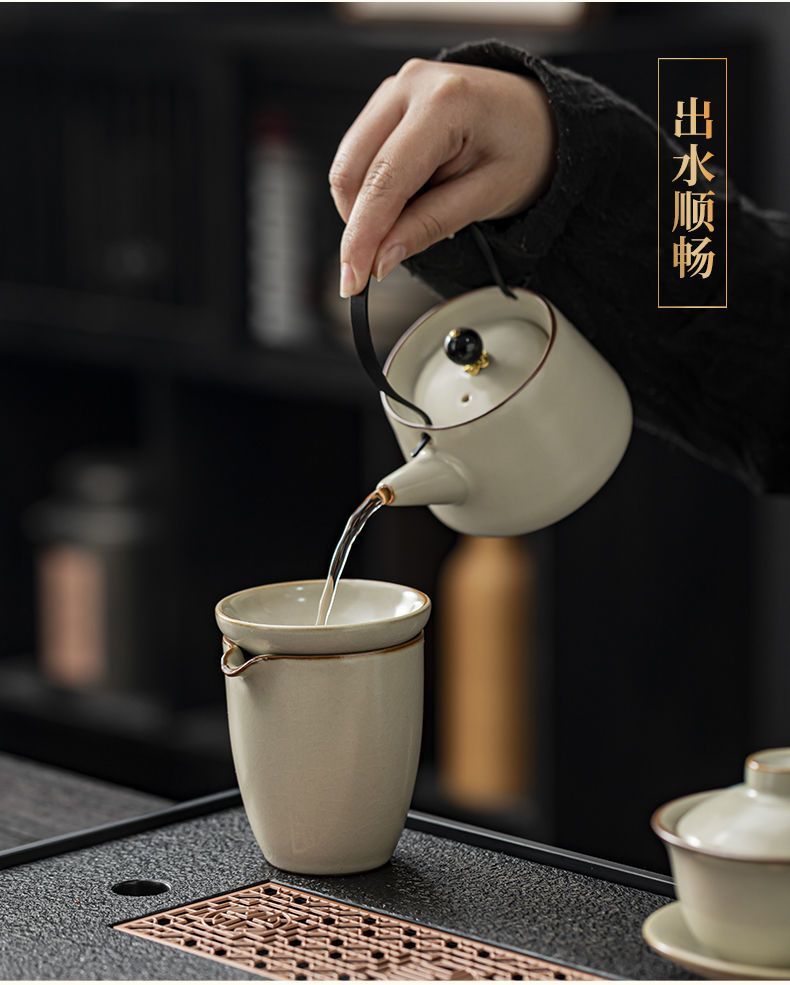 家用客厅汝窑懒人自动功夫茶套装陶瓷泡茶中式提梁壶简易茶具套装