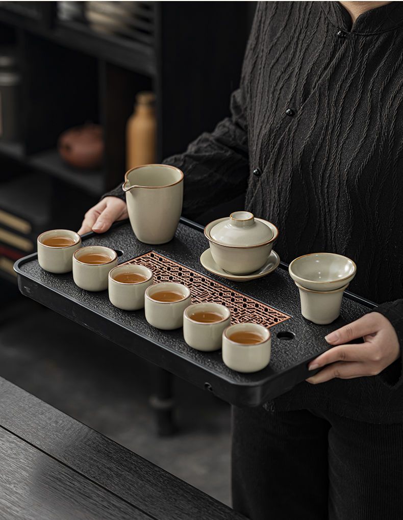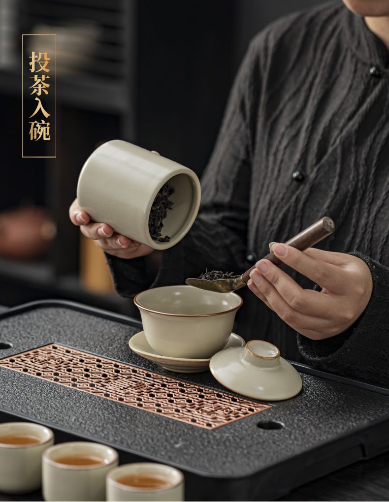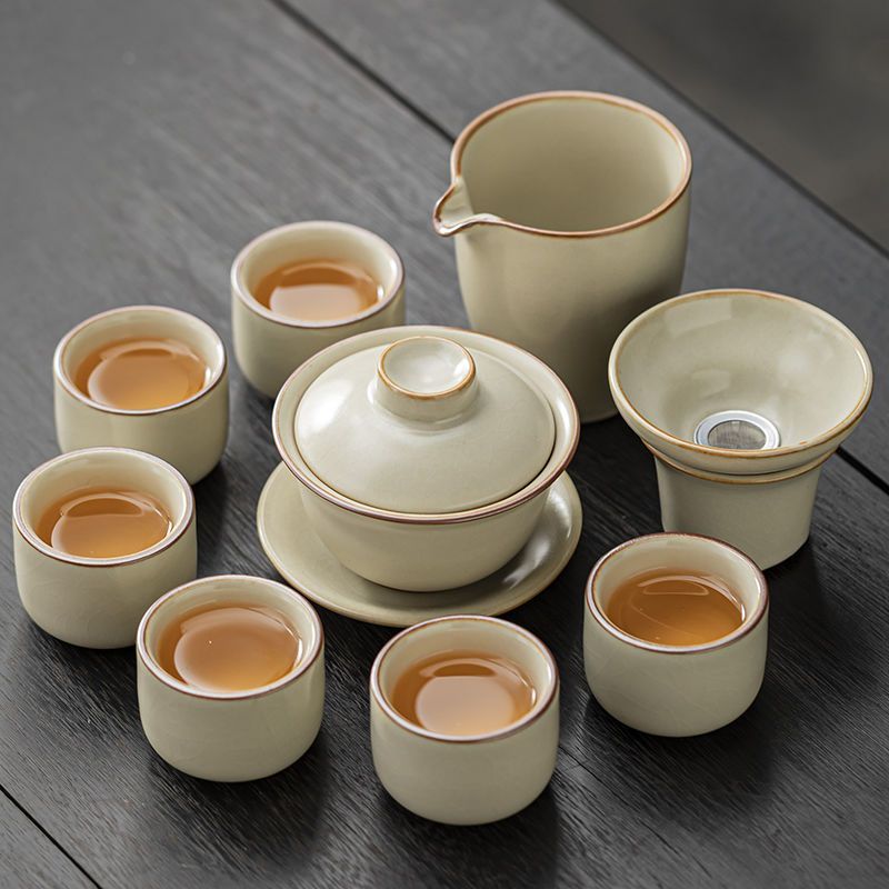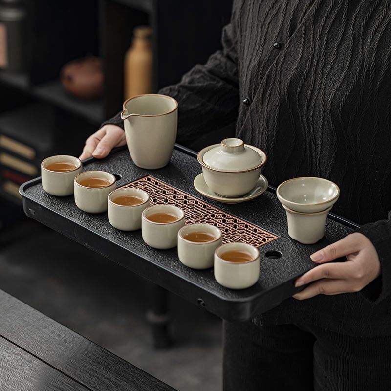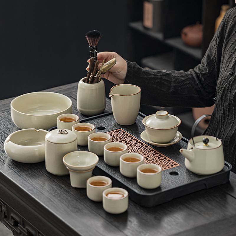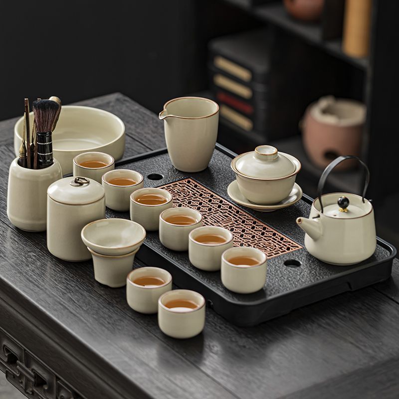 家用客厅汝窑懒人自动功夫茶套装陶瓷泡茶中式提梁壶简易茶具套装