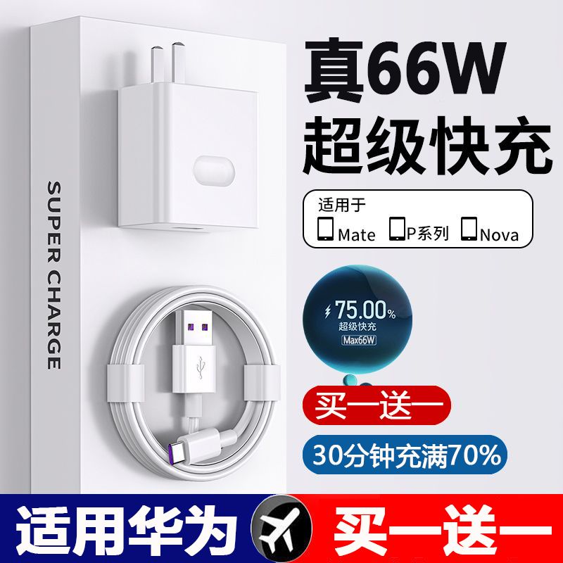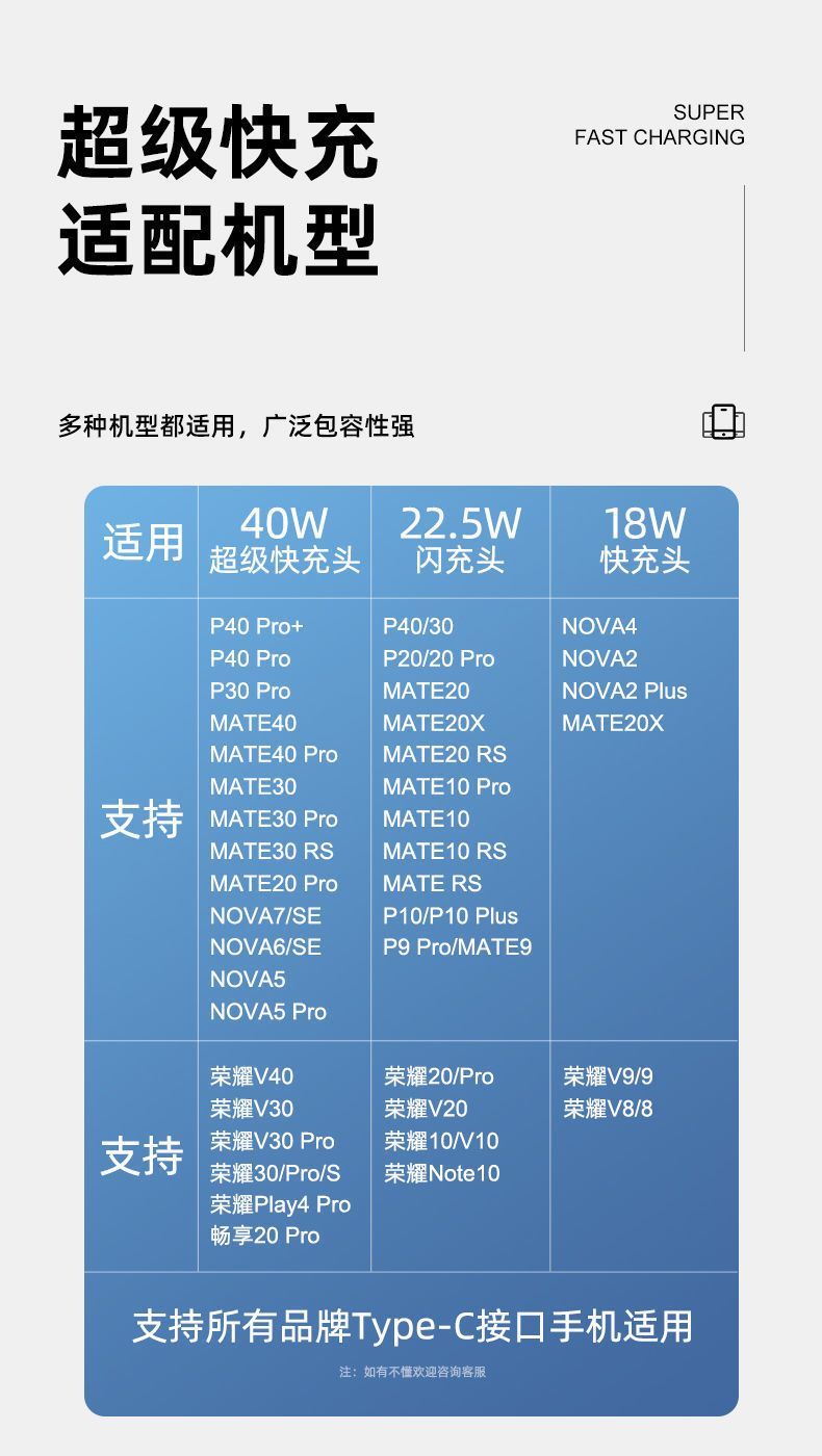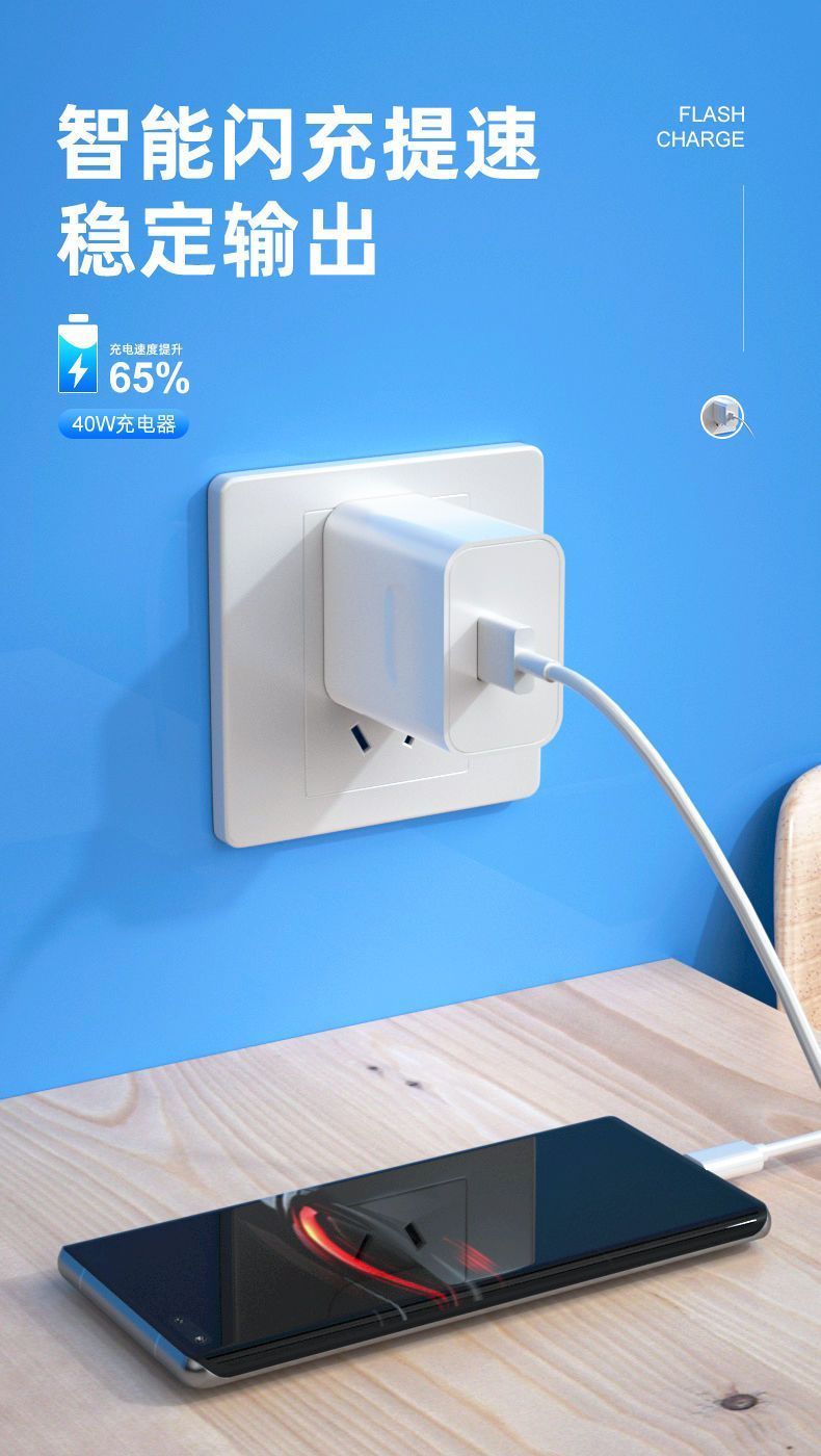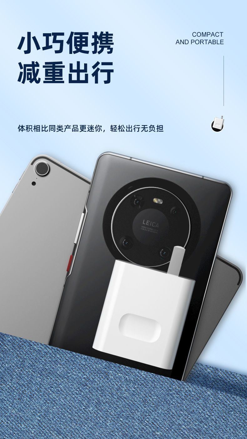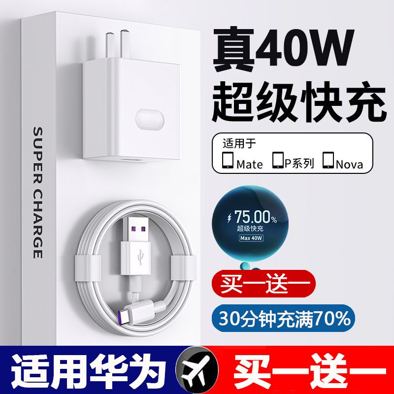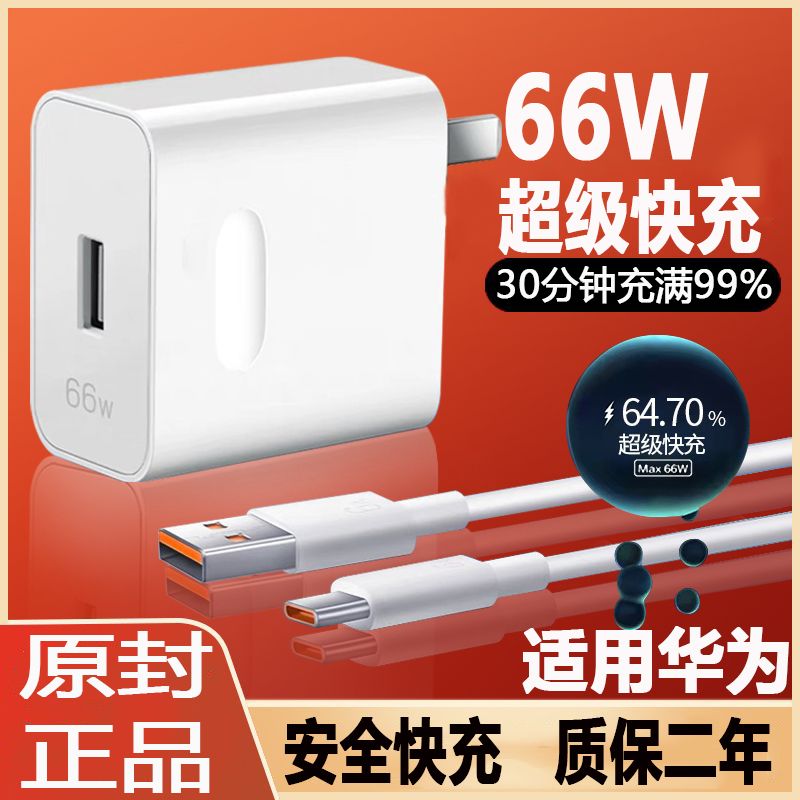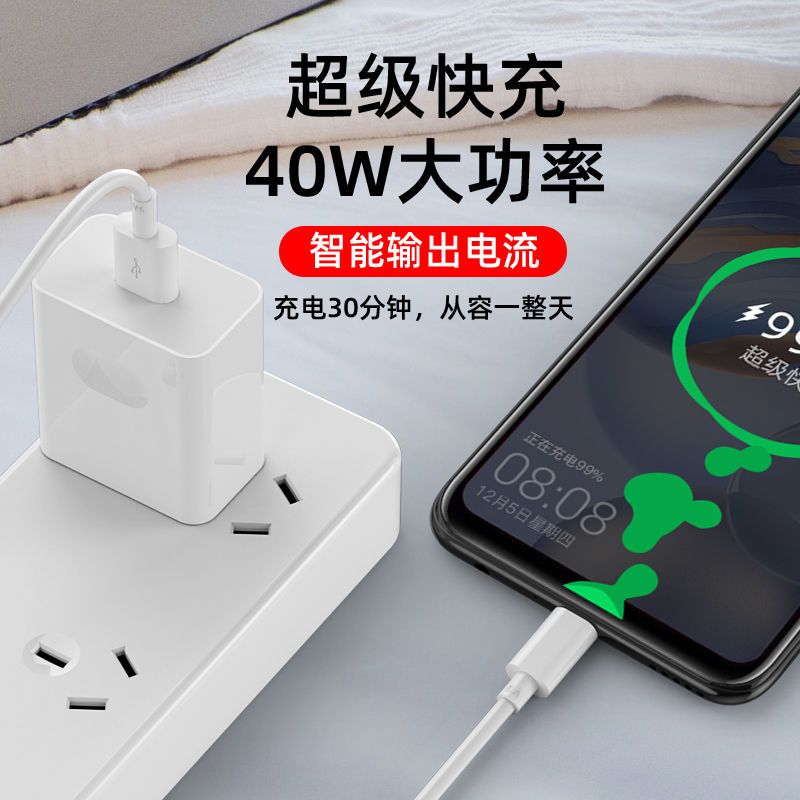 适用华为40W超级快充头mate30/40充电器66W头p20p30p40手机数据线