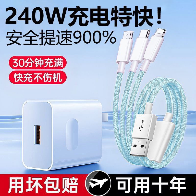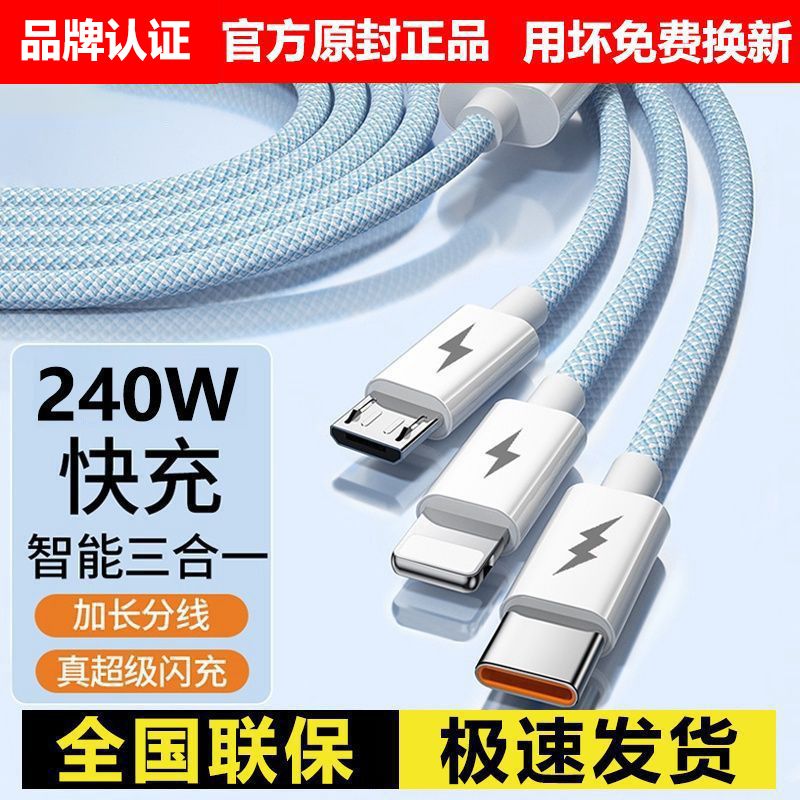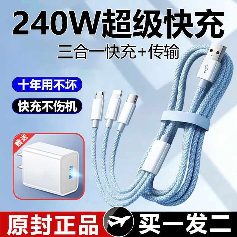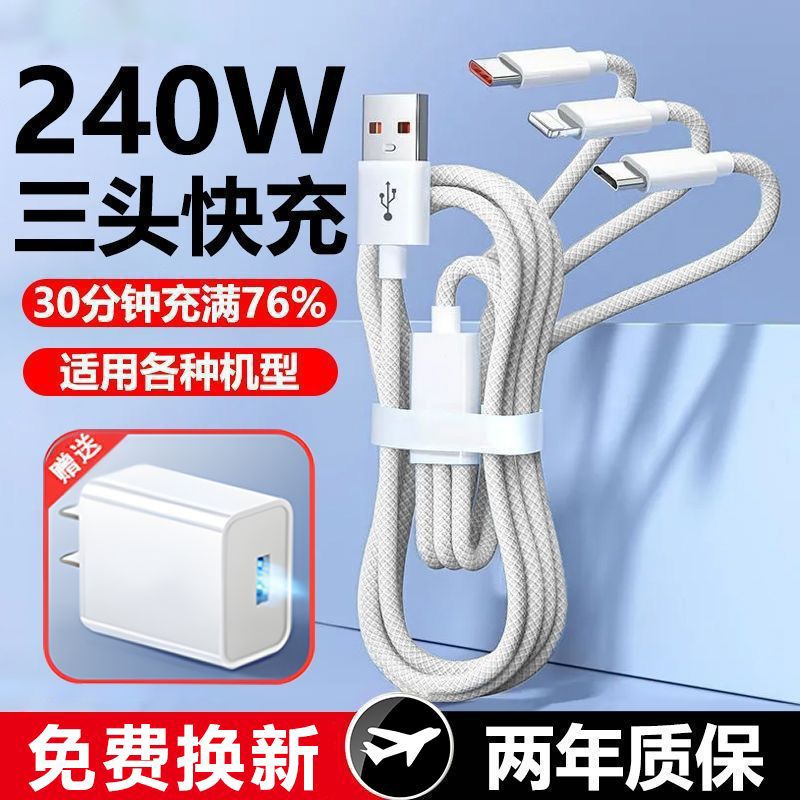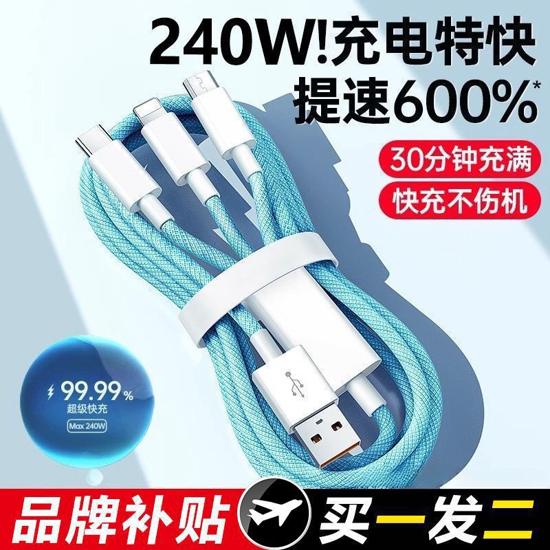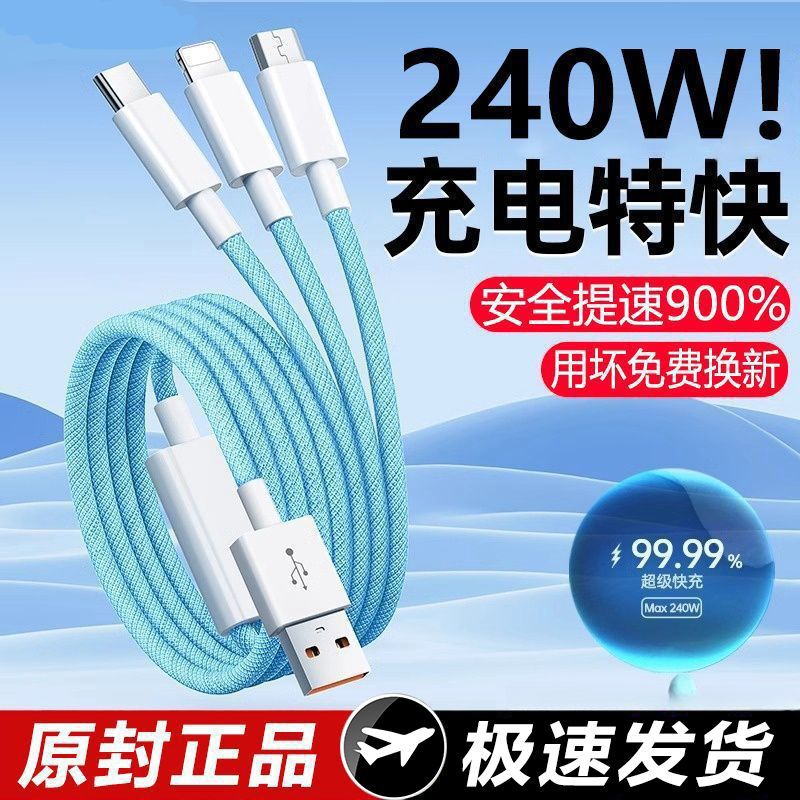 【赠快充头】240W超级快充一拖三编织数据线适用华为三合一快充