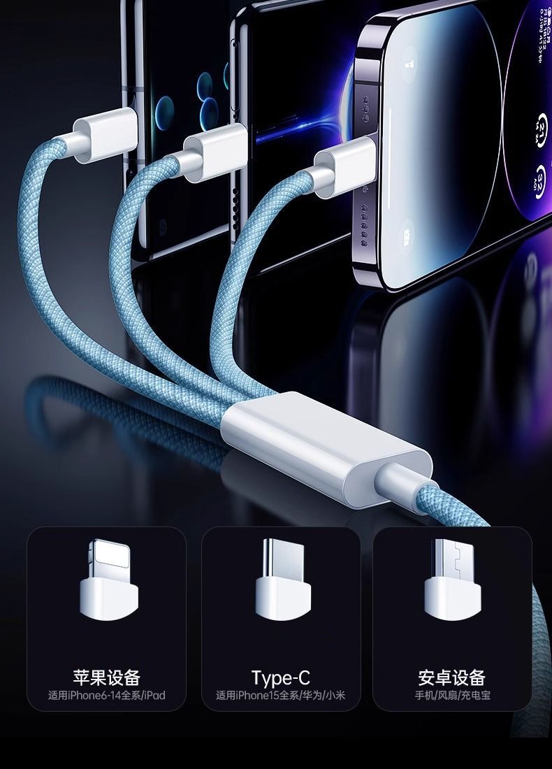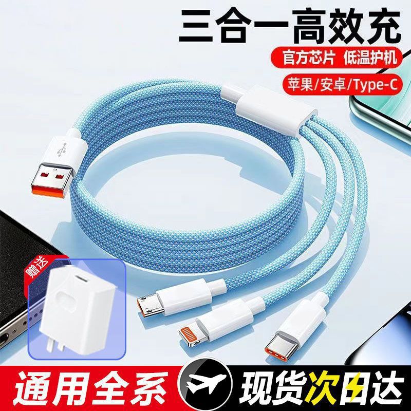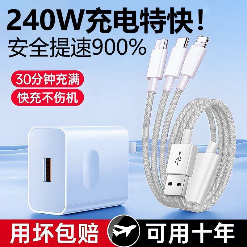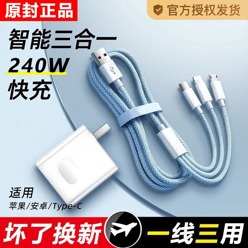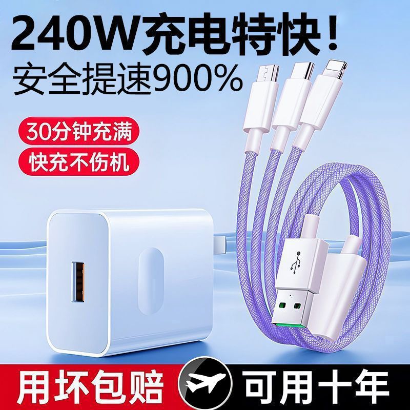 【赠快充头】240W超级快充一拖三编织数据线适用华为三合一快充