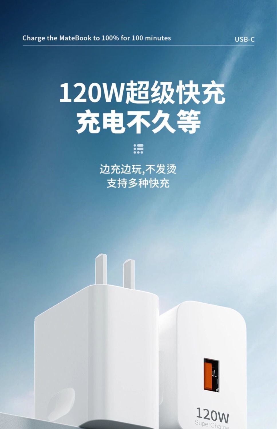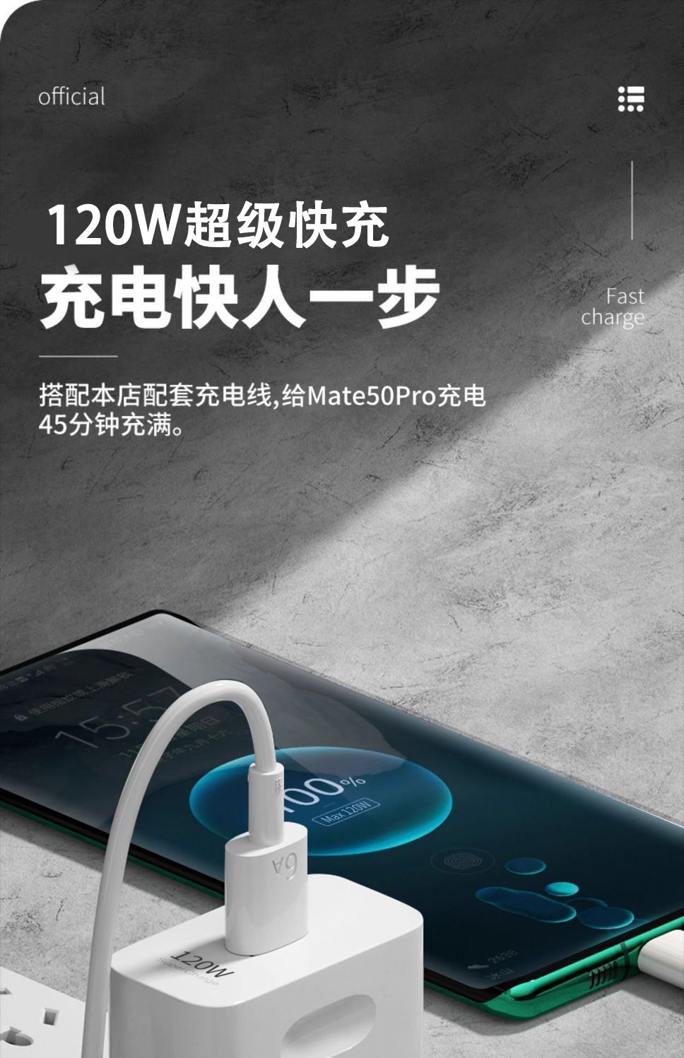 适用华为120W超级快充66W快充充电器荣耀手机数据线mate50/60快充