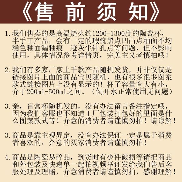 | 陶瓷杯 无盖 无勺【约280-500ml】 | USD $4.02 | 999999 piece available |