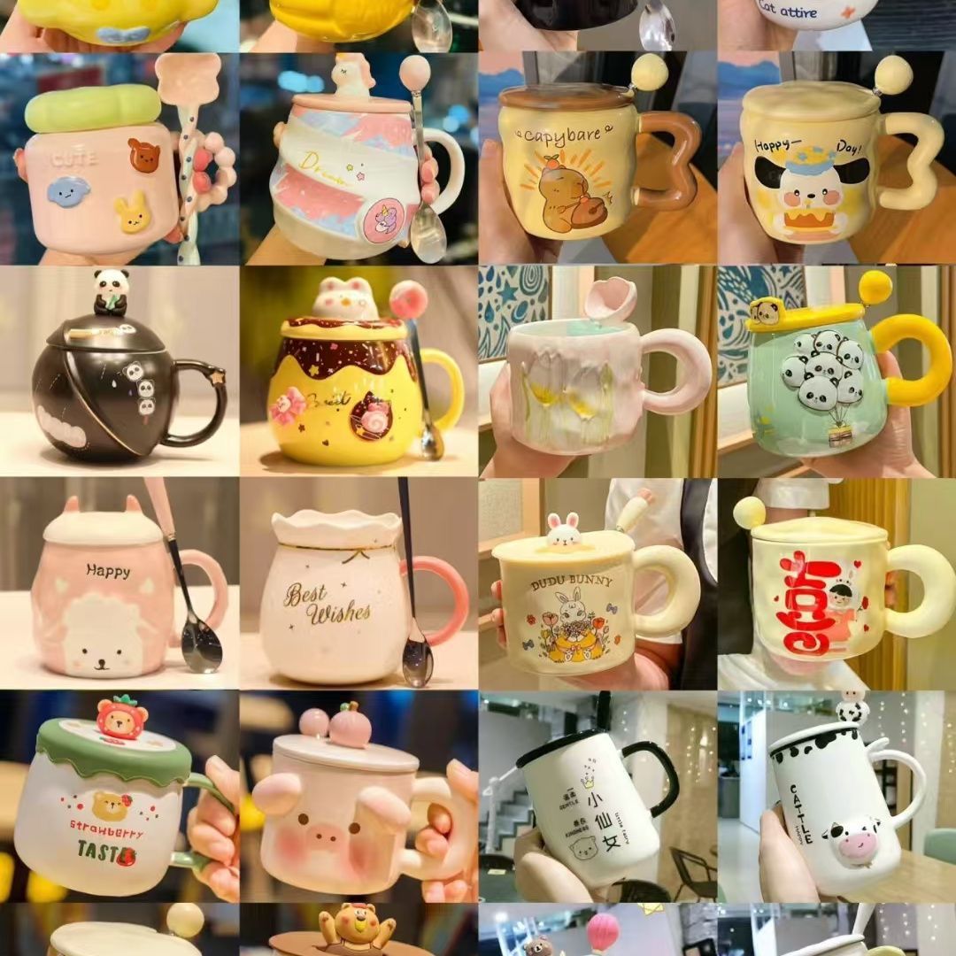ins清仓盲盒捡漏陶瓷马克杯子微瑕清超萌仓高颜值家用喝水杯带盖