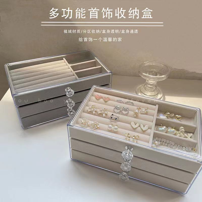 大容量绒布首饰盒2022新款戒指项链耳饰收纳盒高级感便携式防尘盒