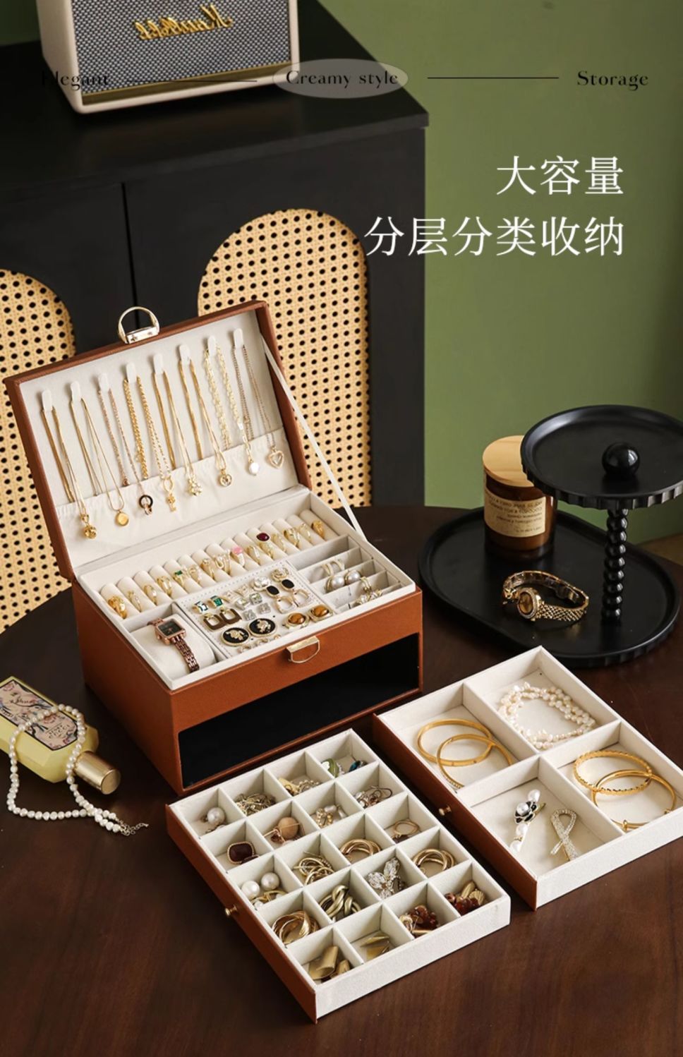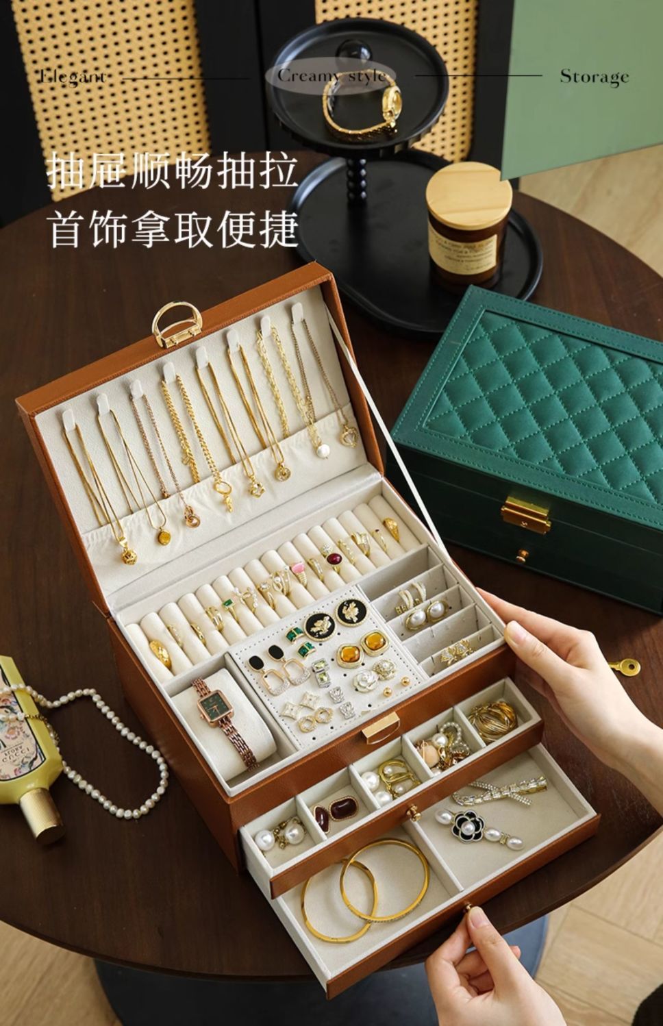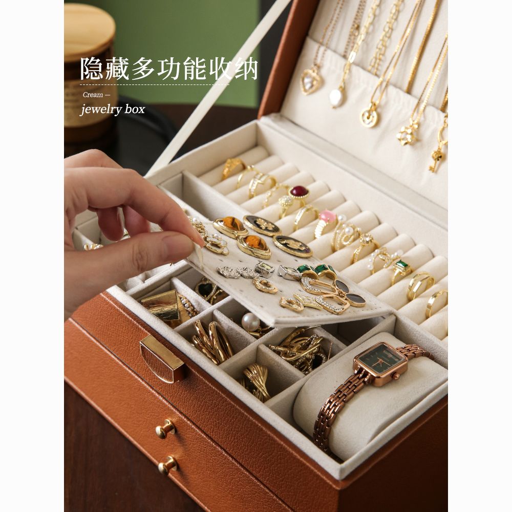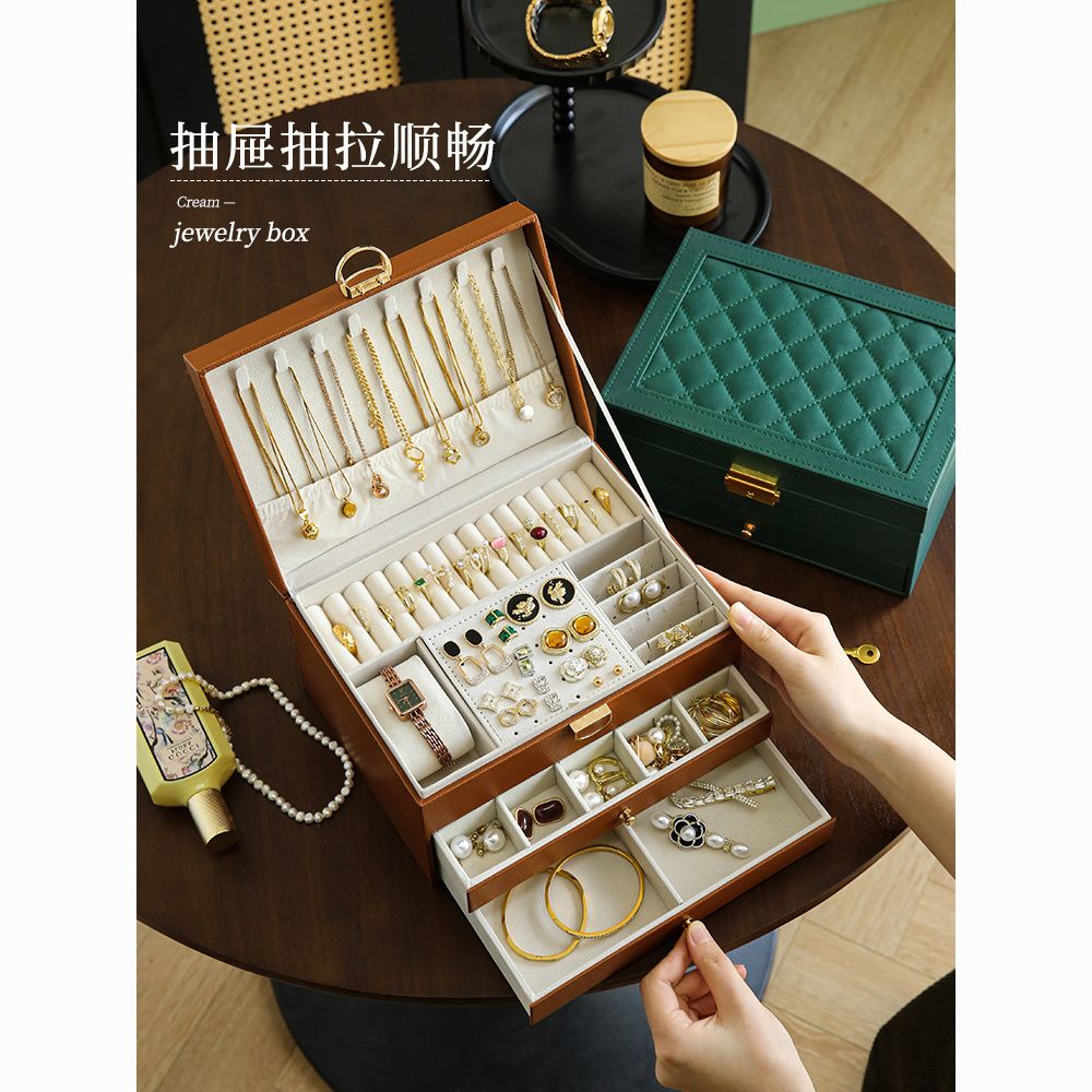 多格轻奢首饰盒多层耳钉大容量带锁珠宝盒耳饰饰品抽屉式收纳盒