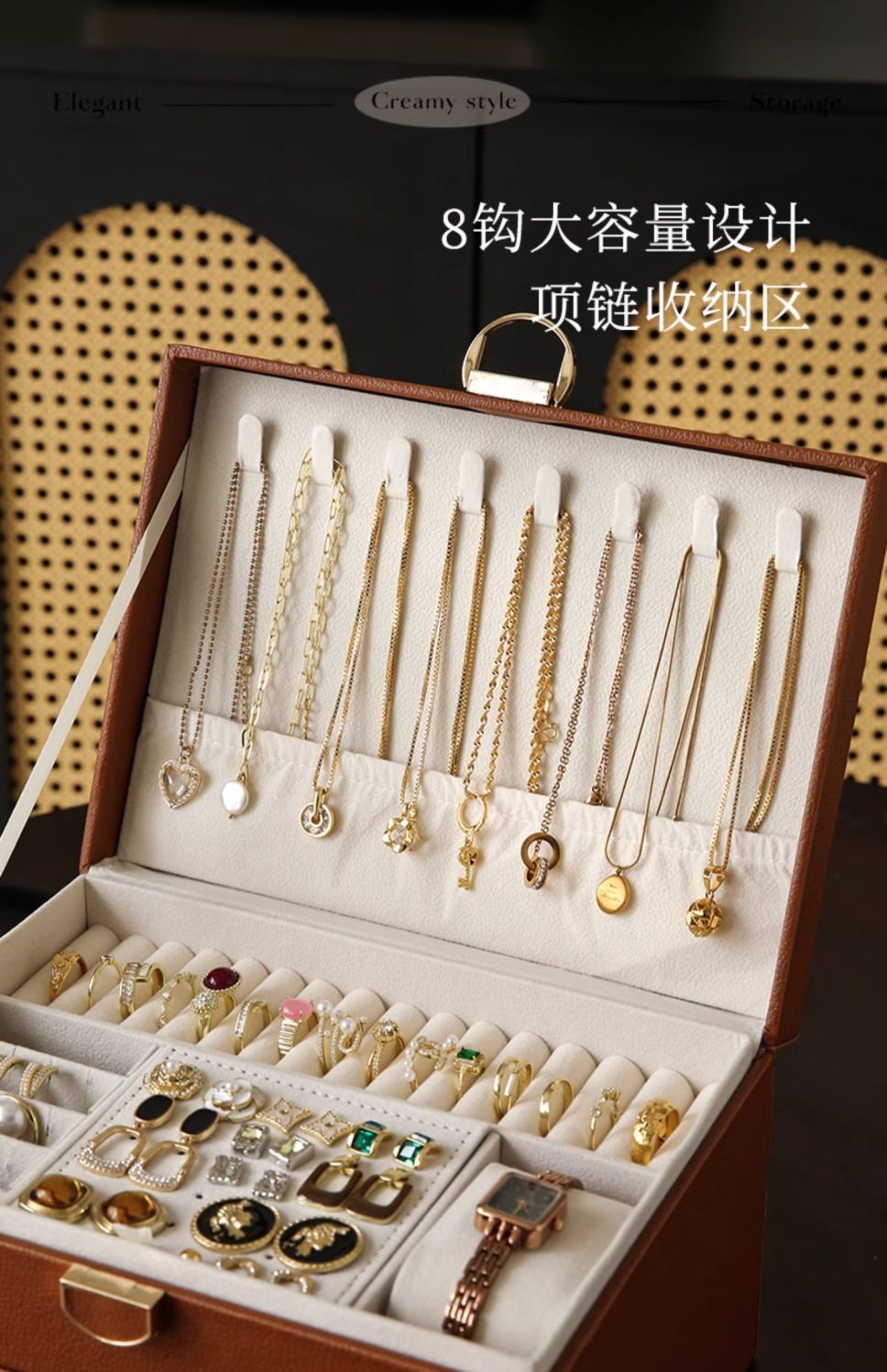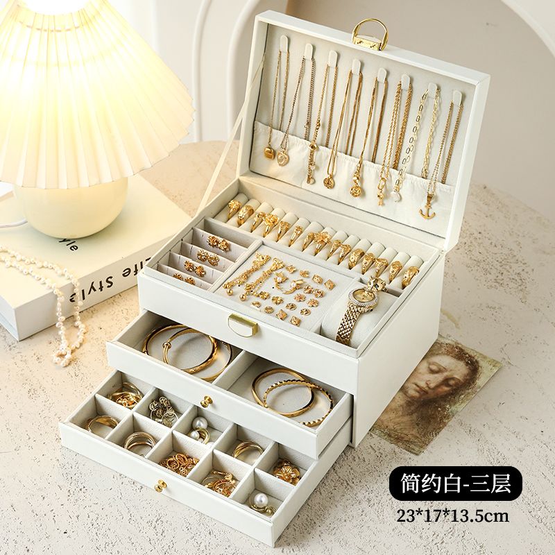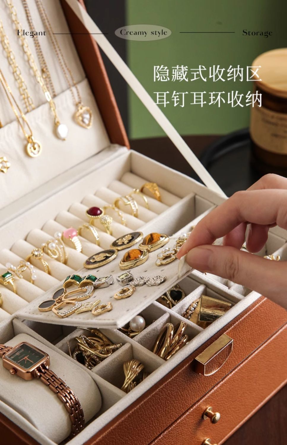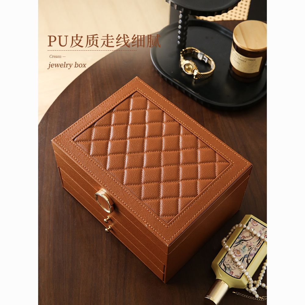 多格轻奢首饰盒多层耳钉大容量带锁珠宝盒耳饰饰品抽屉式收纳盒