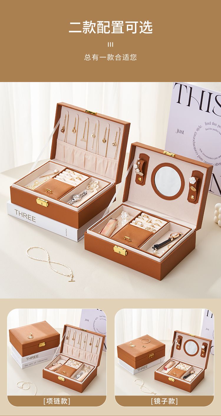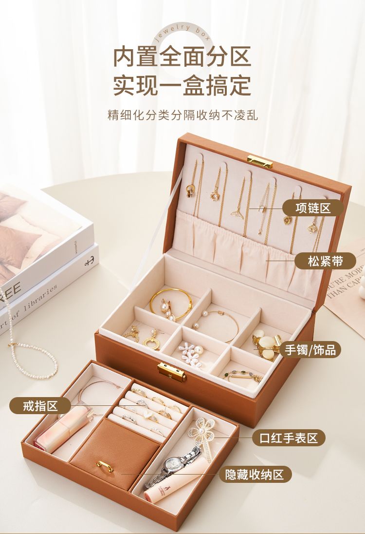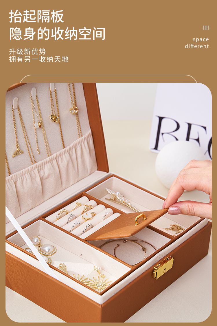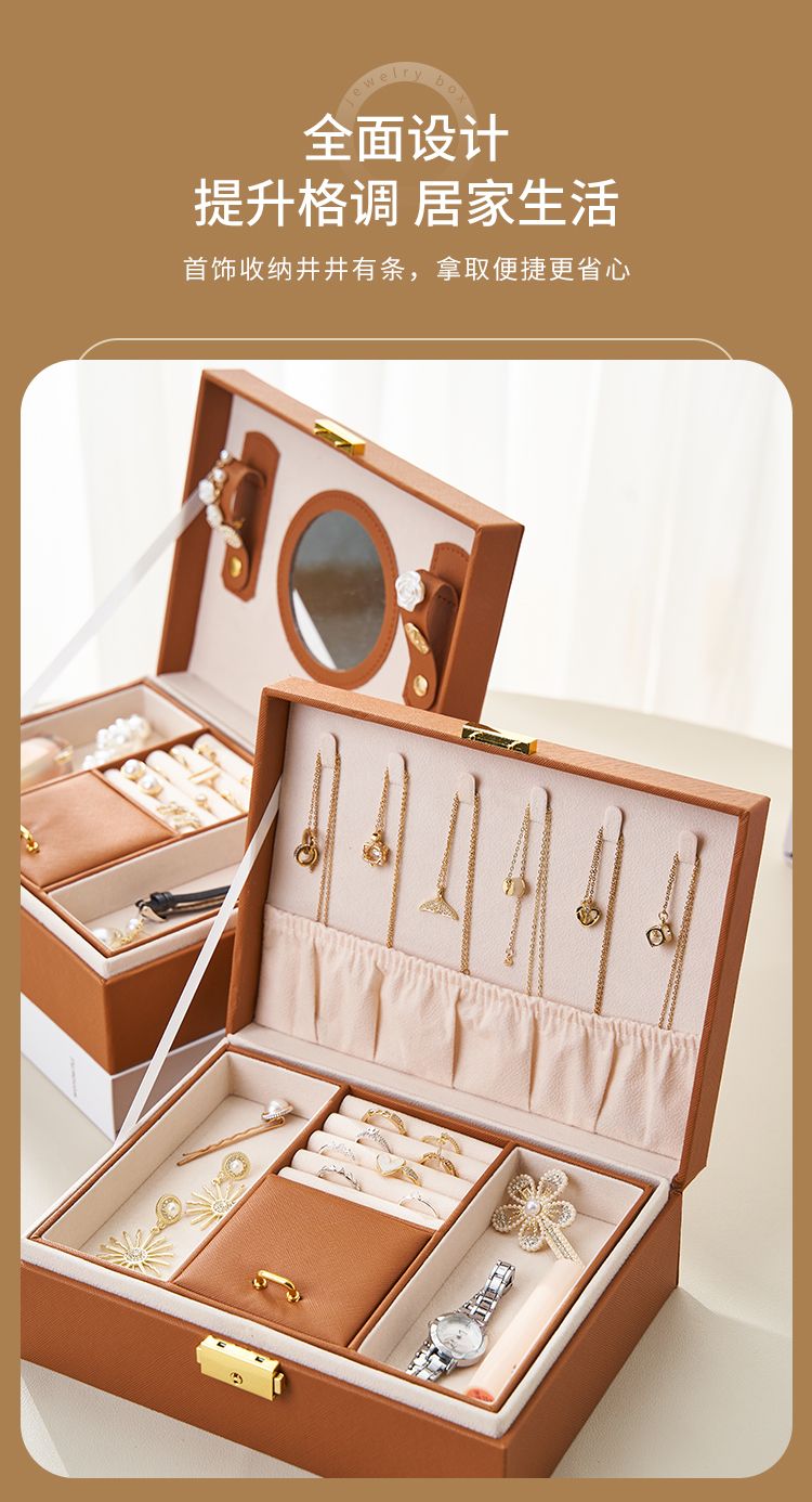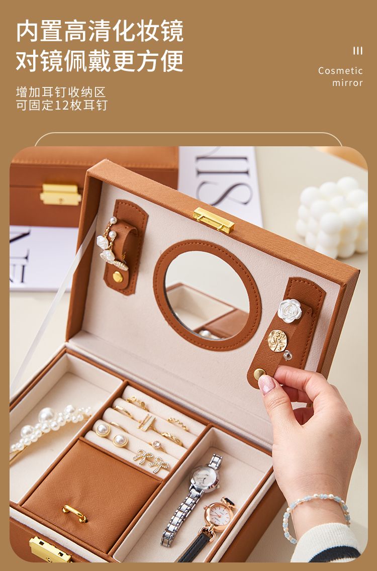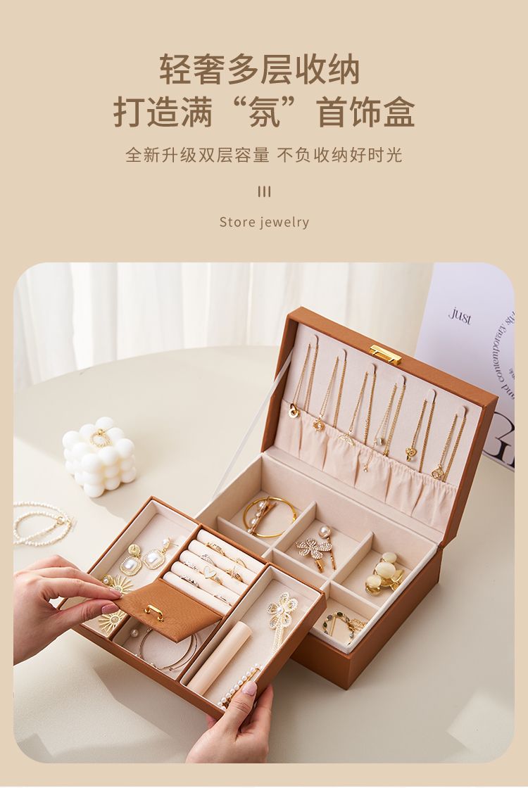 新款美拉德双层首饰盒高档精致防氧化耳环项链耳钉耳饰饰品收纳盒