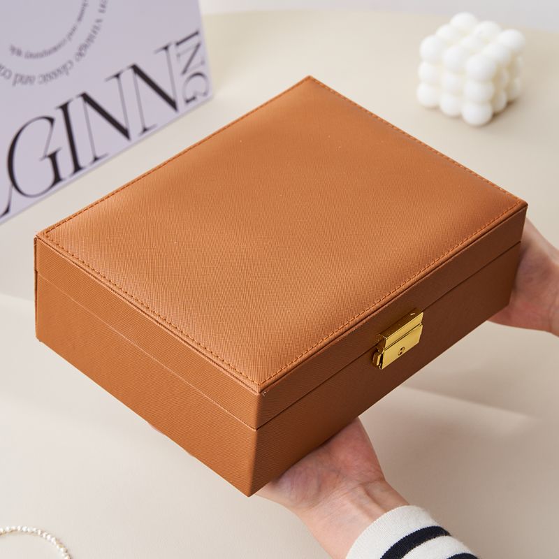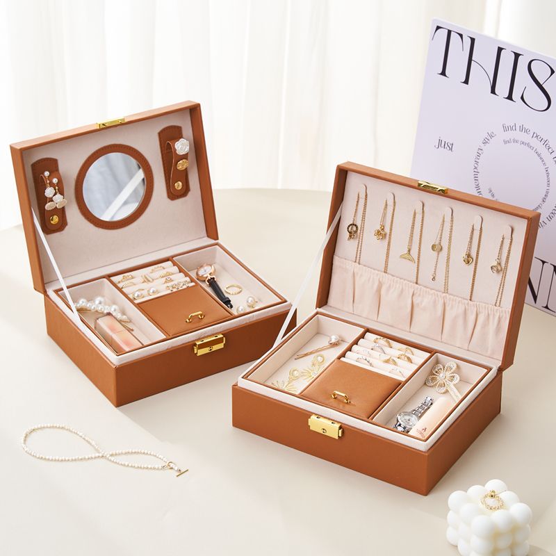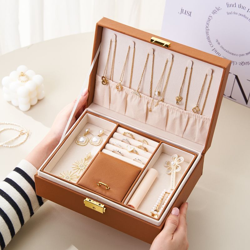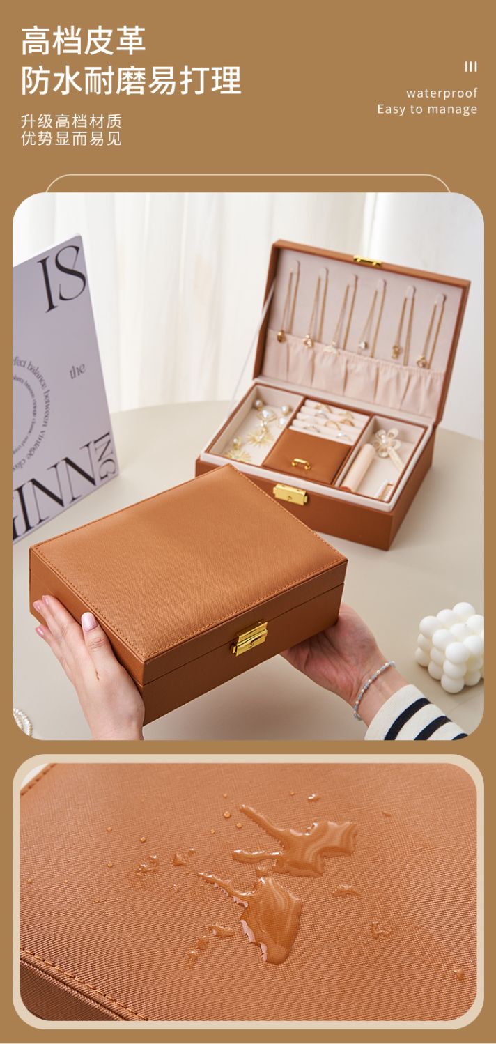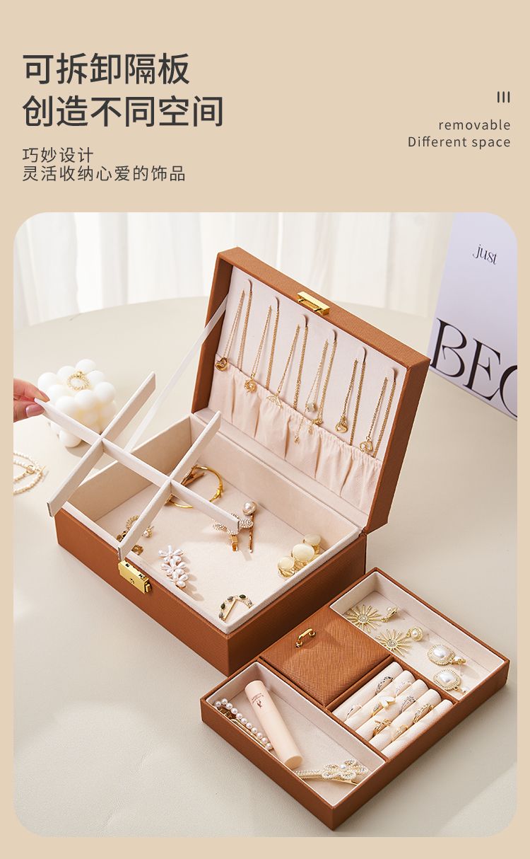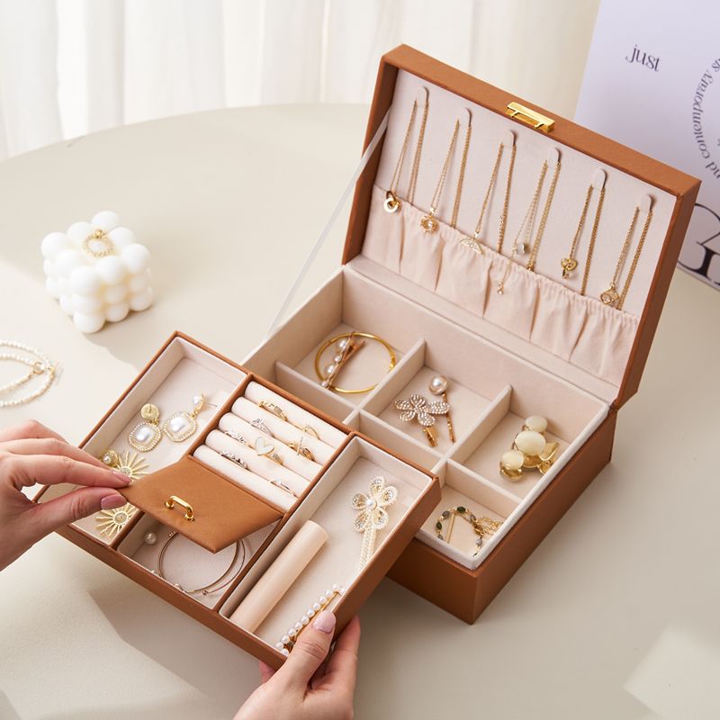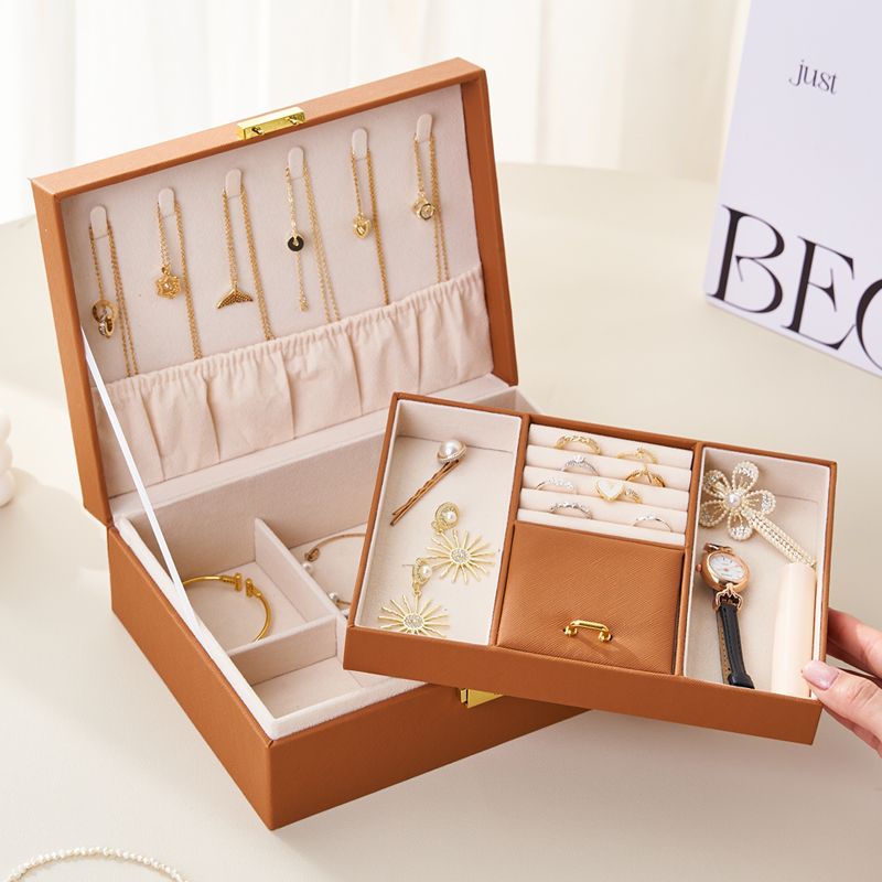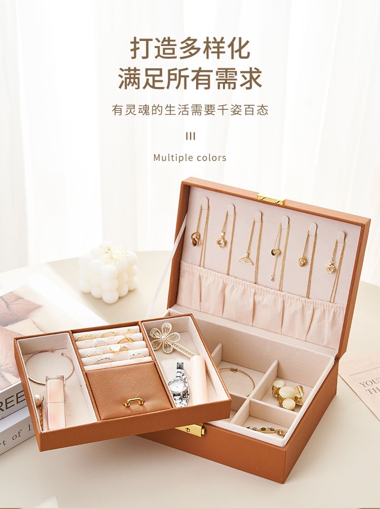 新款美拉德双层首饰盒高档精致防氧化耳环项链耳钉耳饰饰品收纳盒
