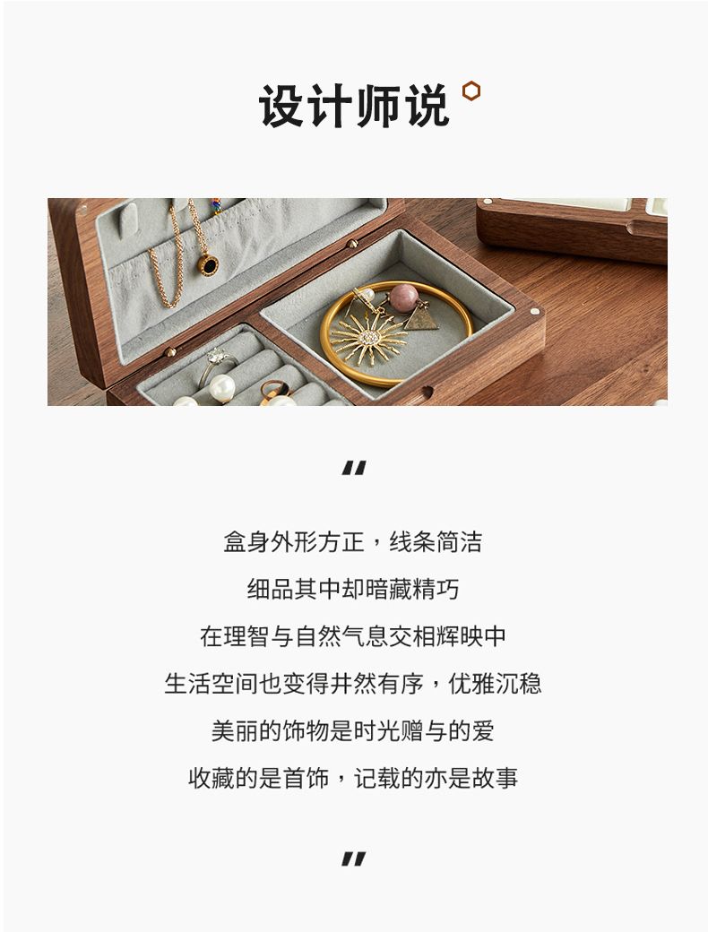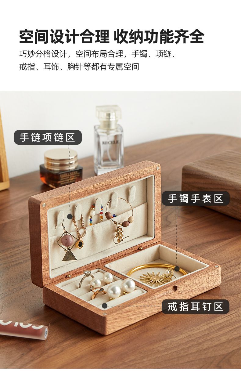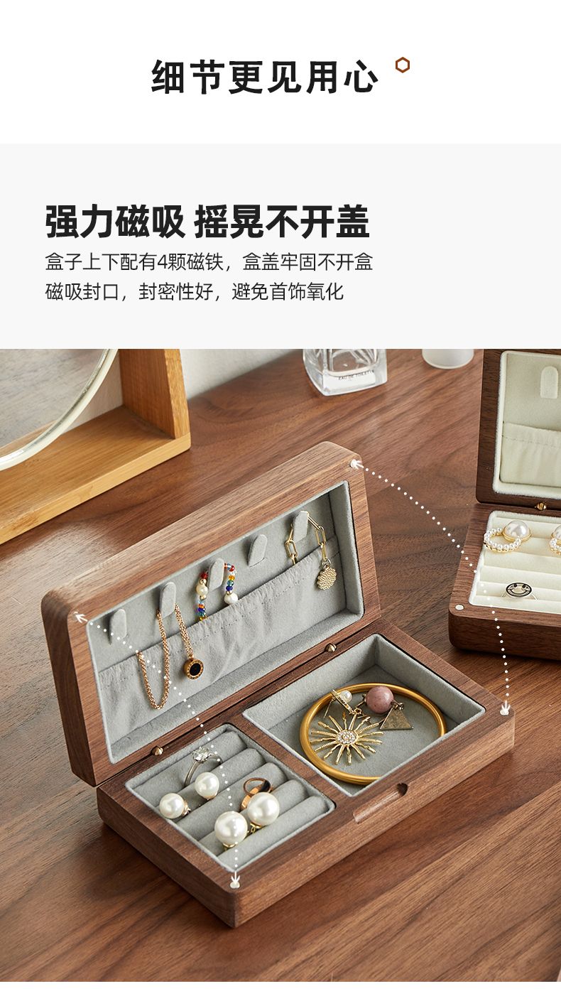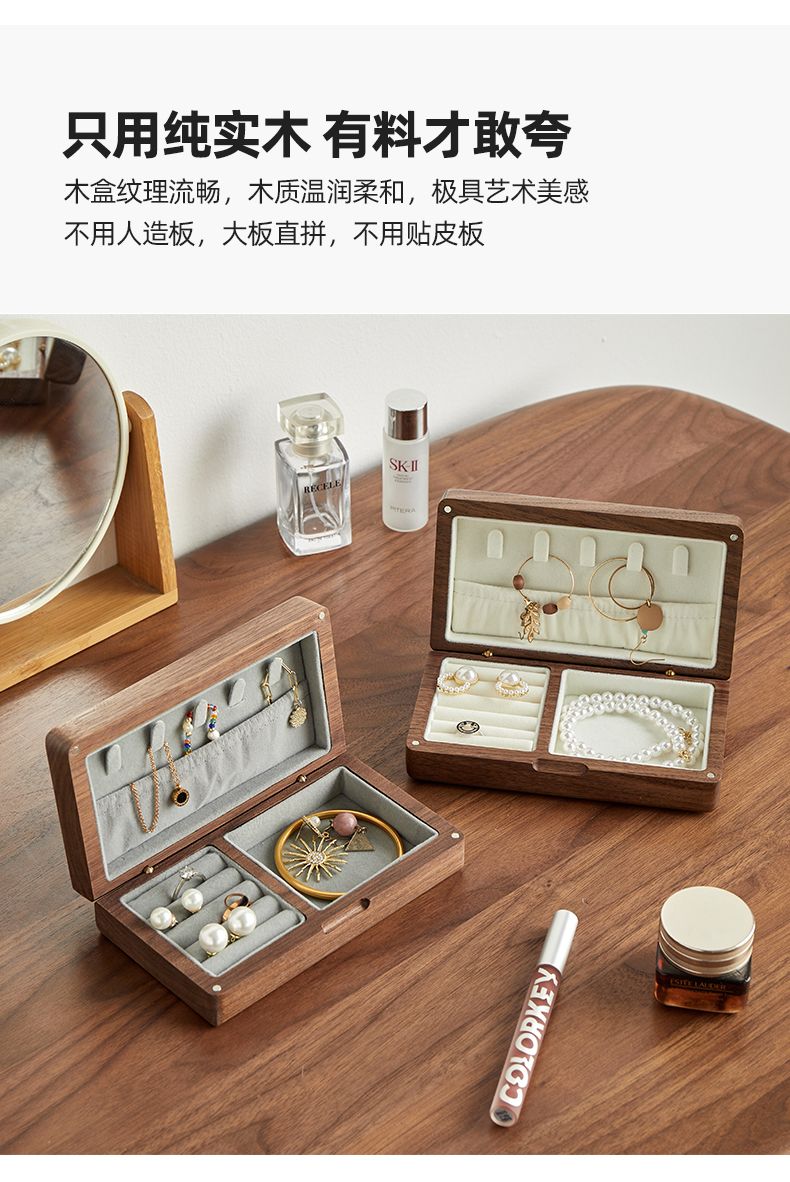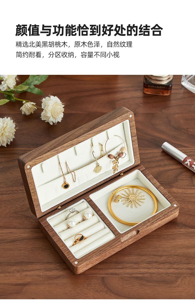 黑胡桃实木首饰盒收纳盒高档精致高端珠宝戒指耳饰金饰首饰收纳盒