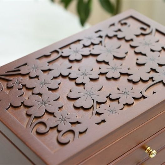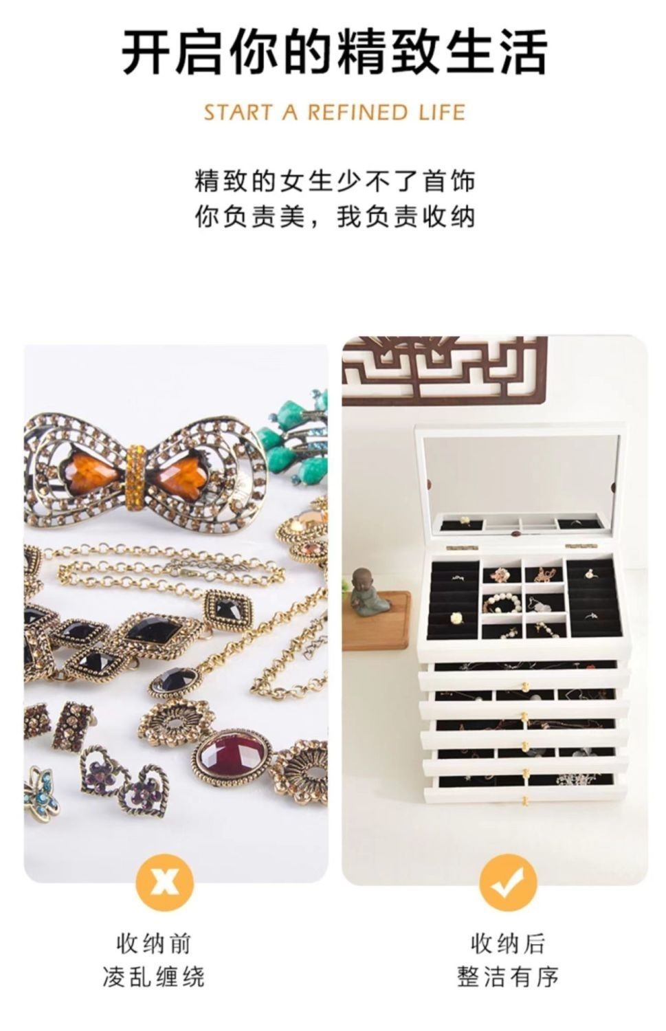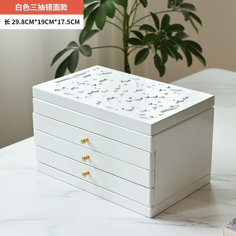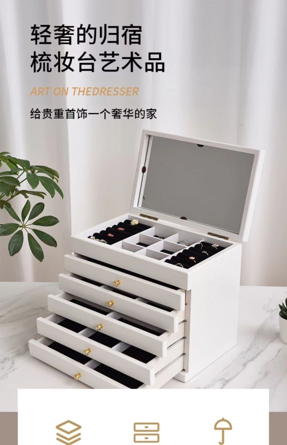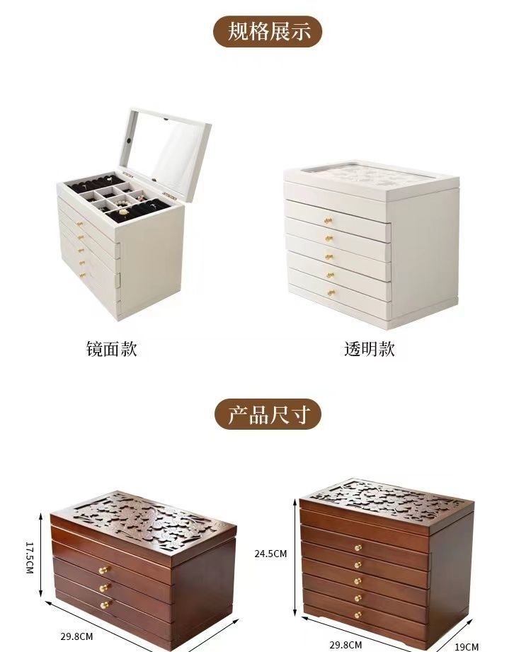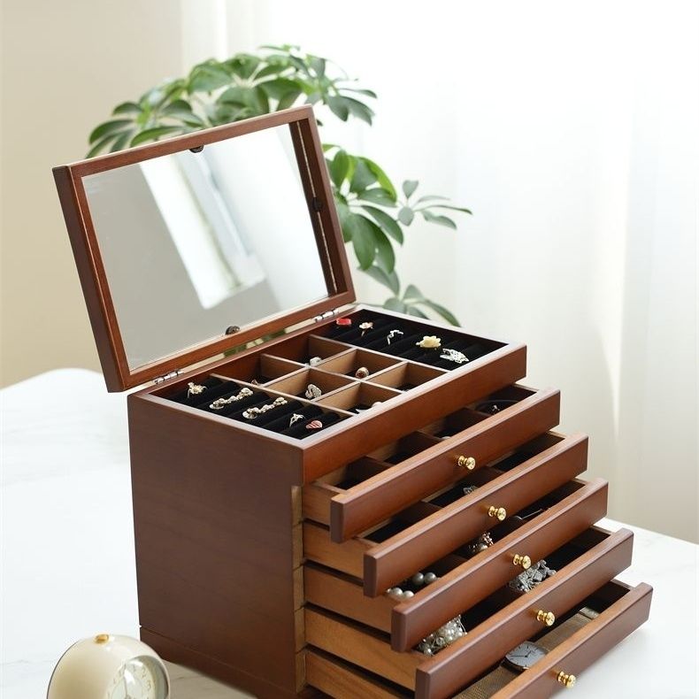 高级多层多格带镜面项链耳环收纳盒复古大容量木质首饰实木首饰盒