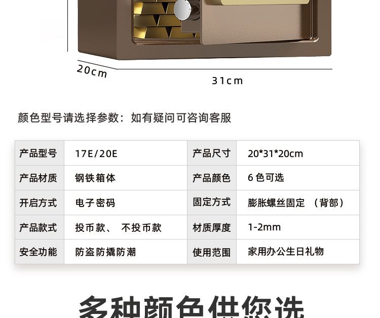 HMRD保险柜家用小型迷你入墙投币保管箱电子密码办公保险箱17E20E