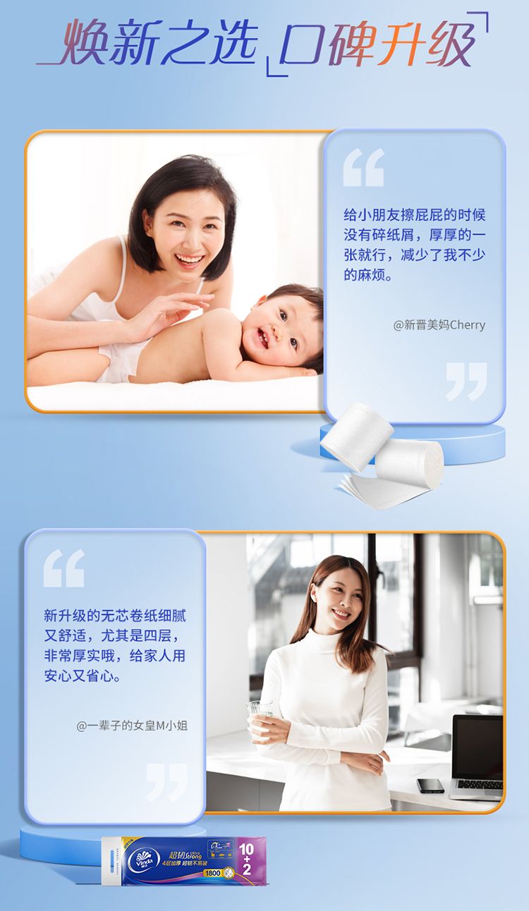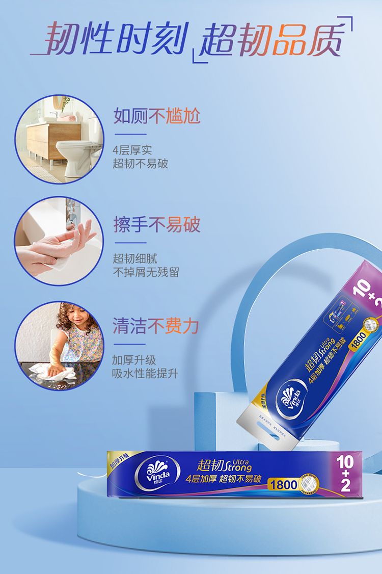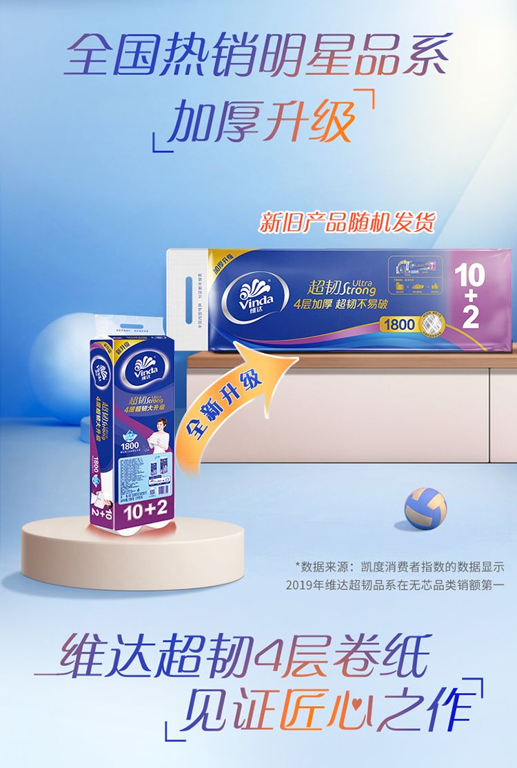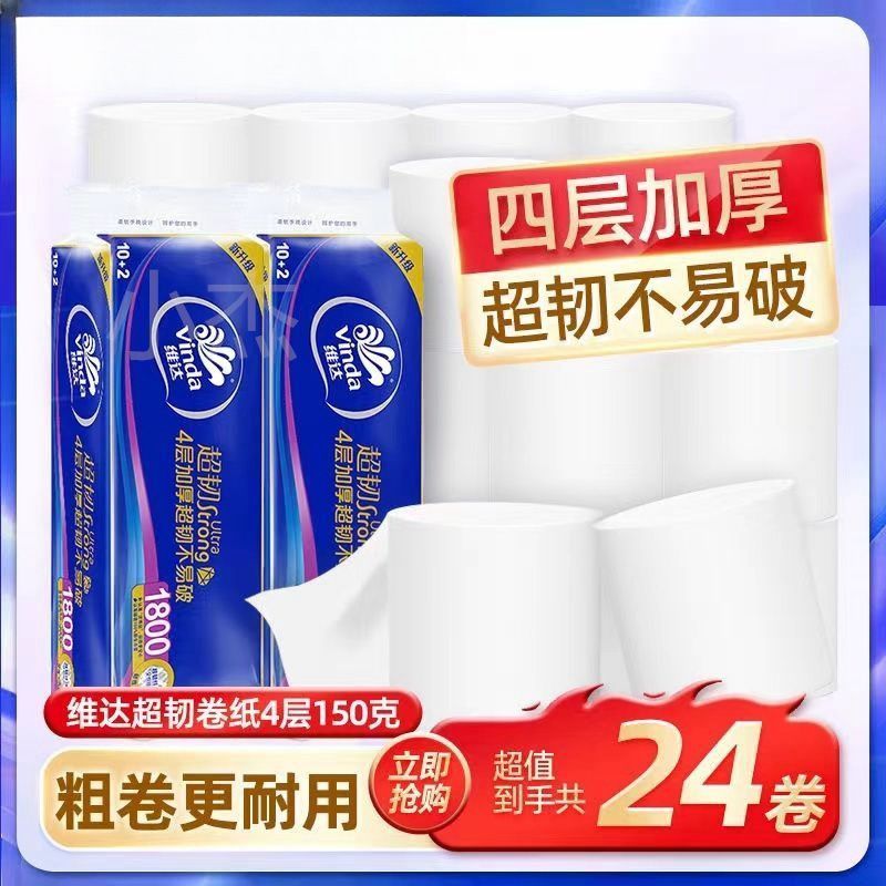 维达超韧无芯1800克家用原木实心卫生纸厕所纸短棒卷筒纸卷纸批发