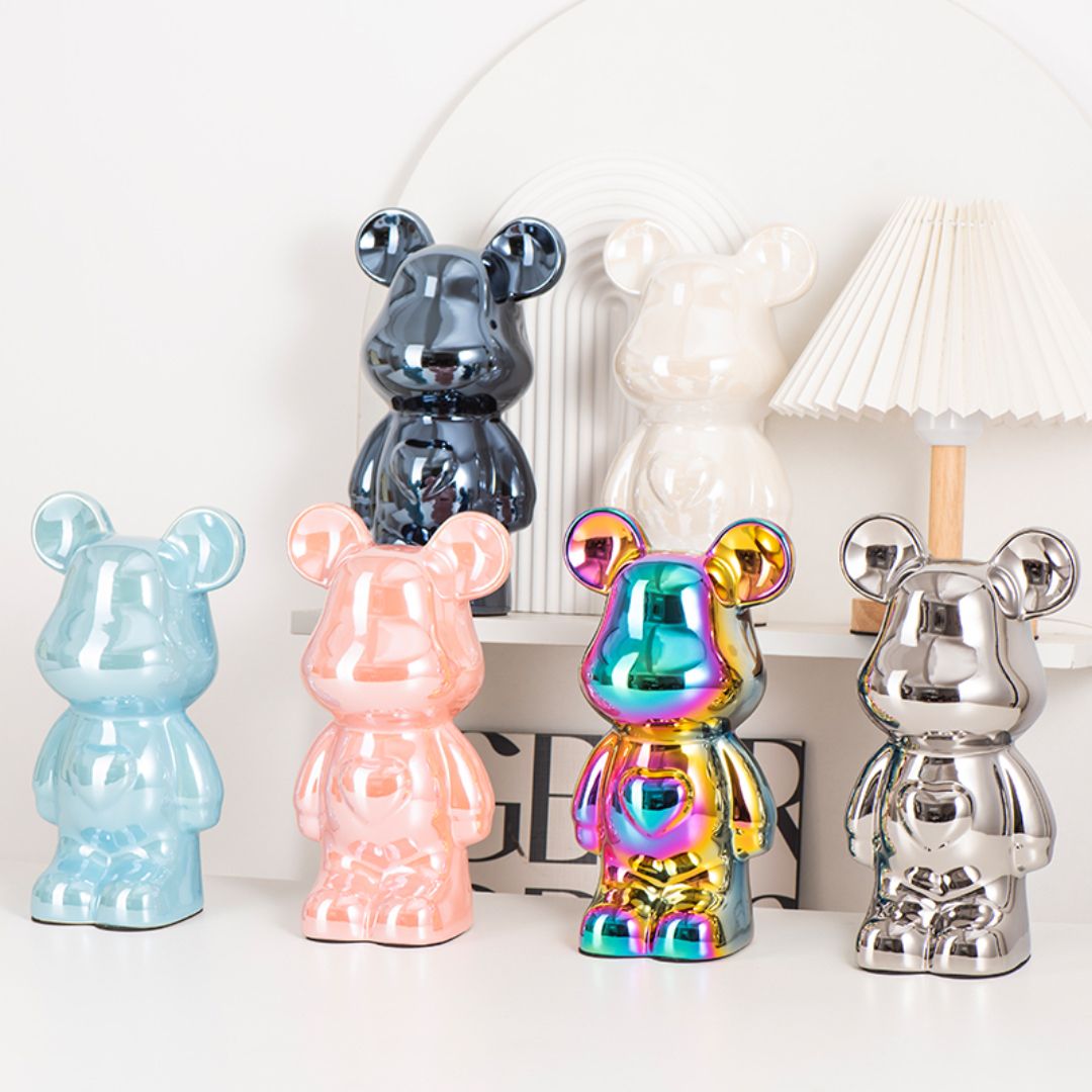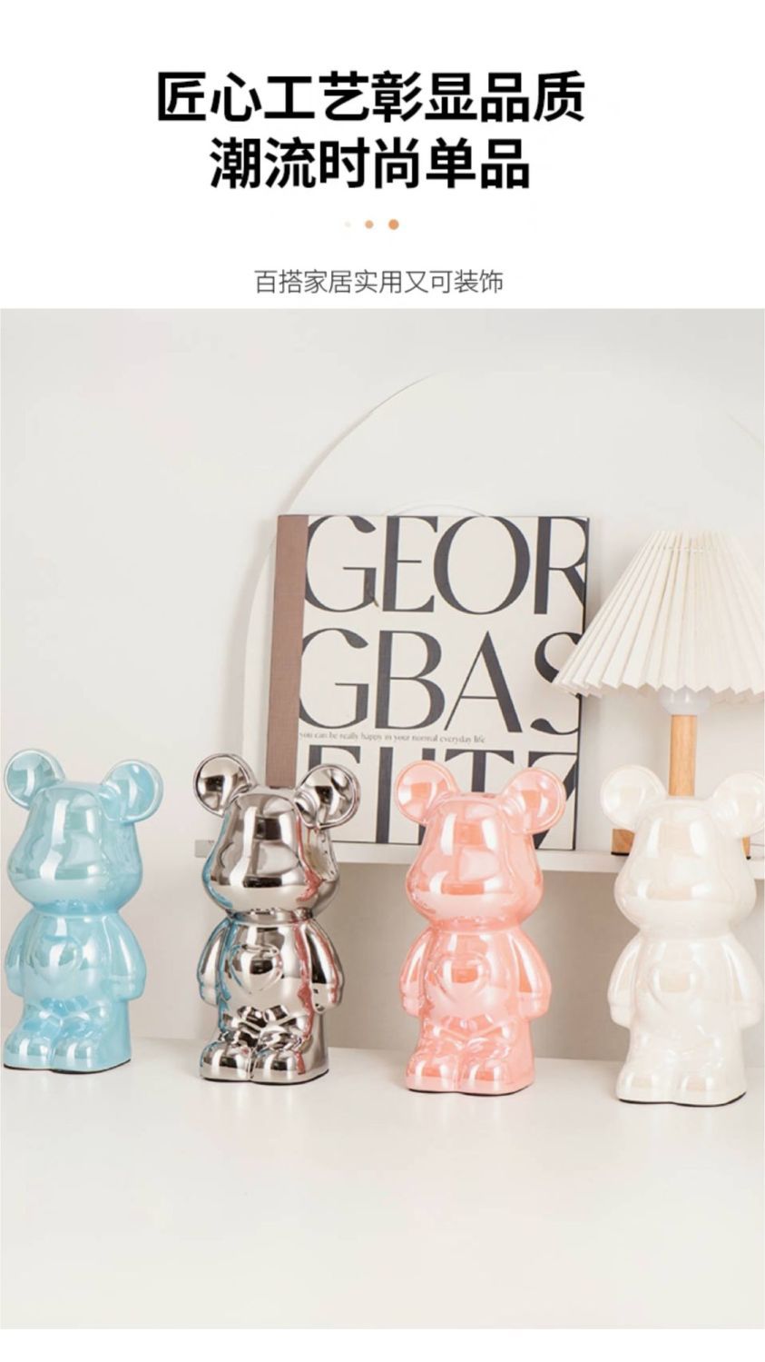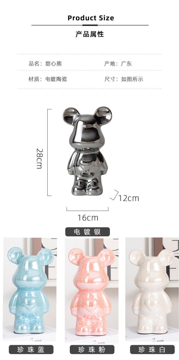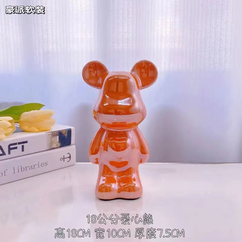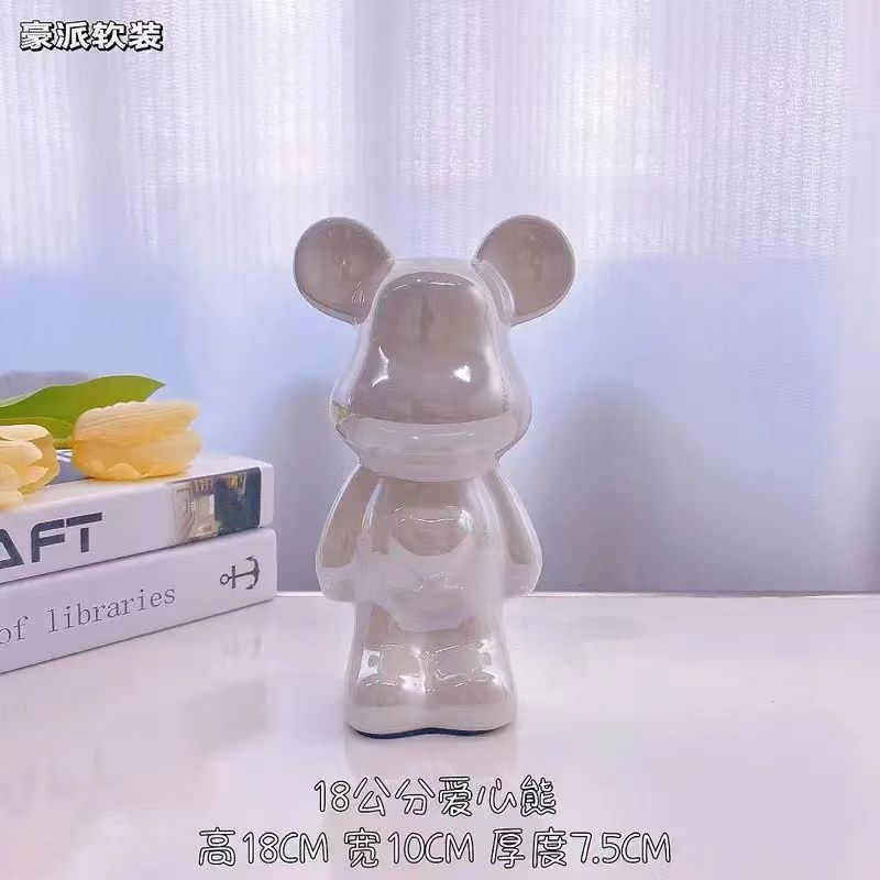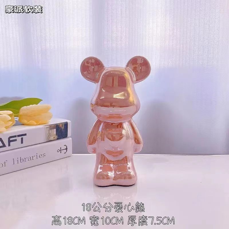 暴力爱心熊摆件高档陶瓷客厅玄关电视柜酒柜存钱罐家居装饰品送礼