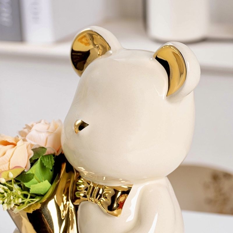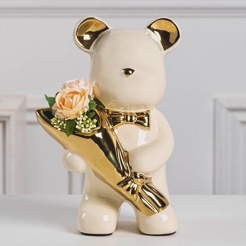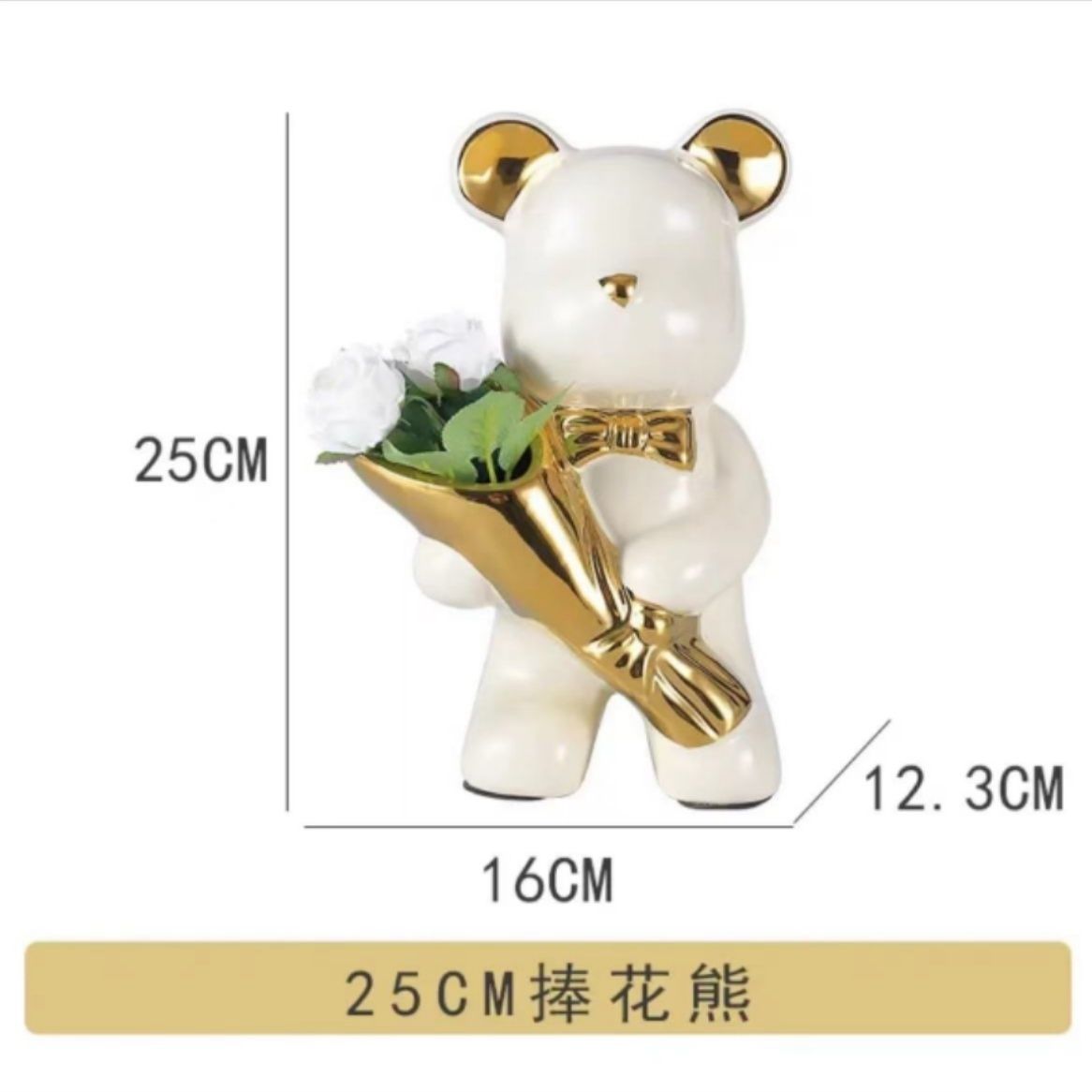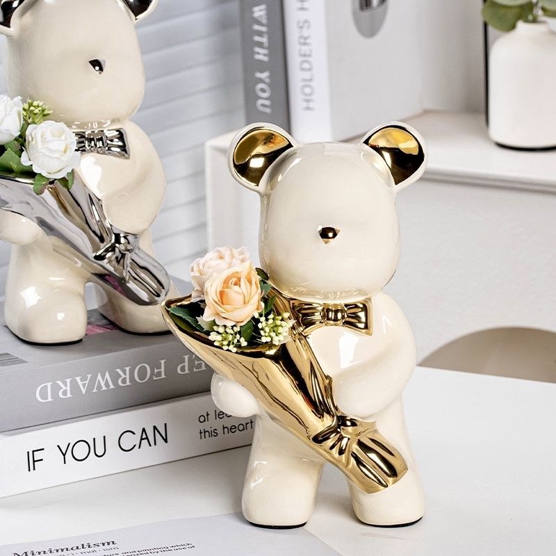 网红陶瓷暴力熊花束熊抱花熊仿真花家居摆件潮玩工艺品入门玄关柜