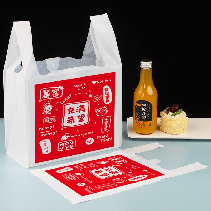 新款外卖打包袋网红高颜值餐饮外卖地摊水果商用背心袋可定制批发