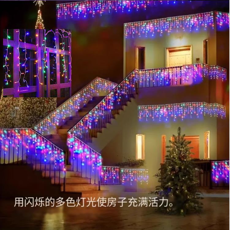 LED冰条灯窗帘瀑布灯彩灯闪灯串灯满天星商场门头装饰星星灯挂灯