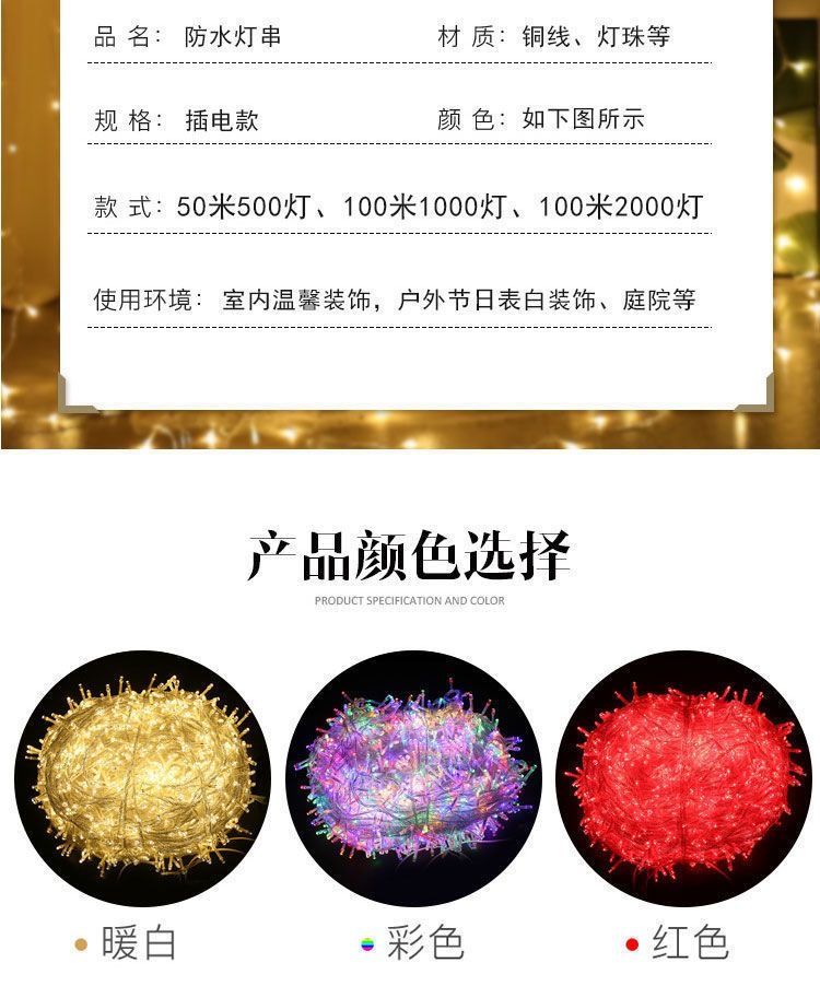 | 10米100个灯插电款可串联 | USD $2.32 | 999999 piece available |