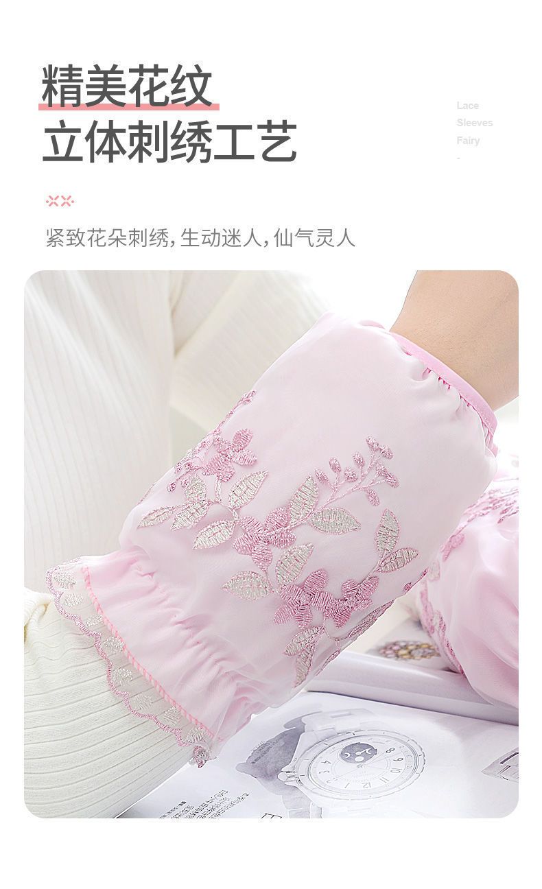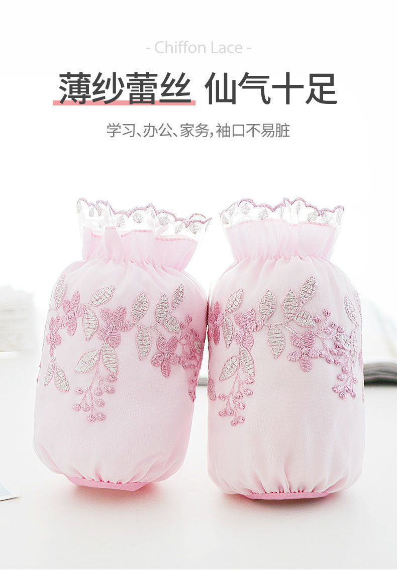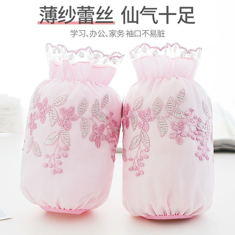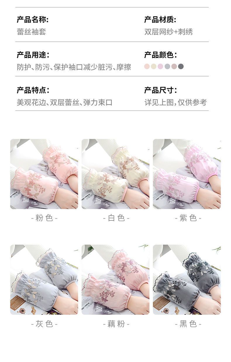 双层网纱蕾丝袖套女秋冬防脏套袖成人学生袖筒黑白米色透明护袖头