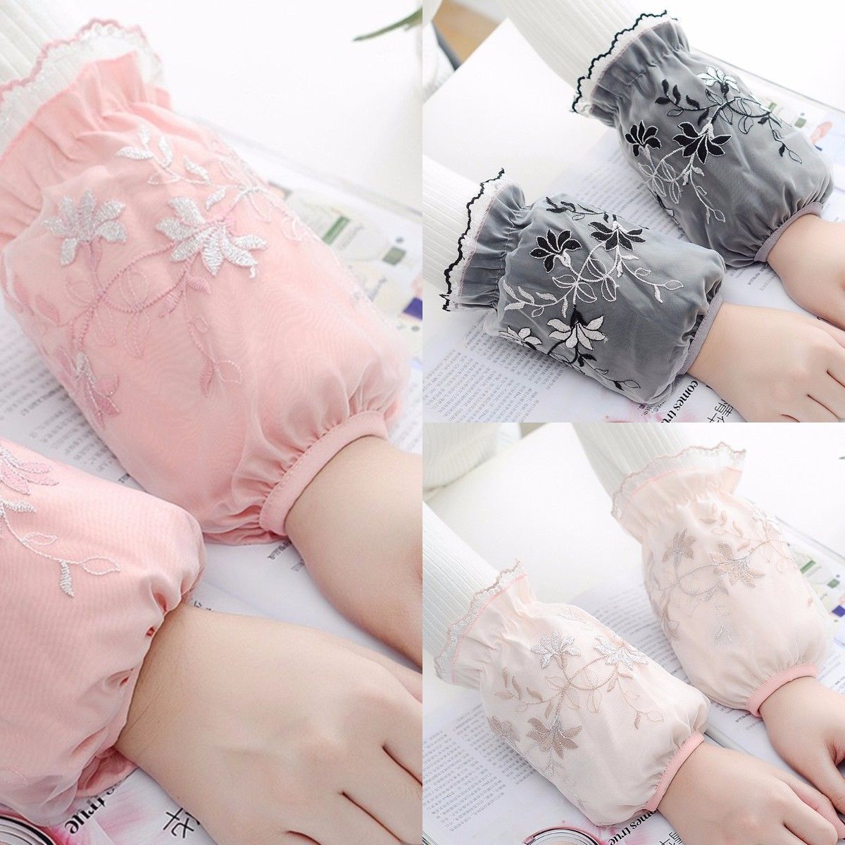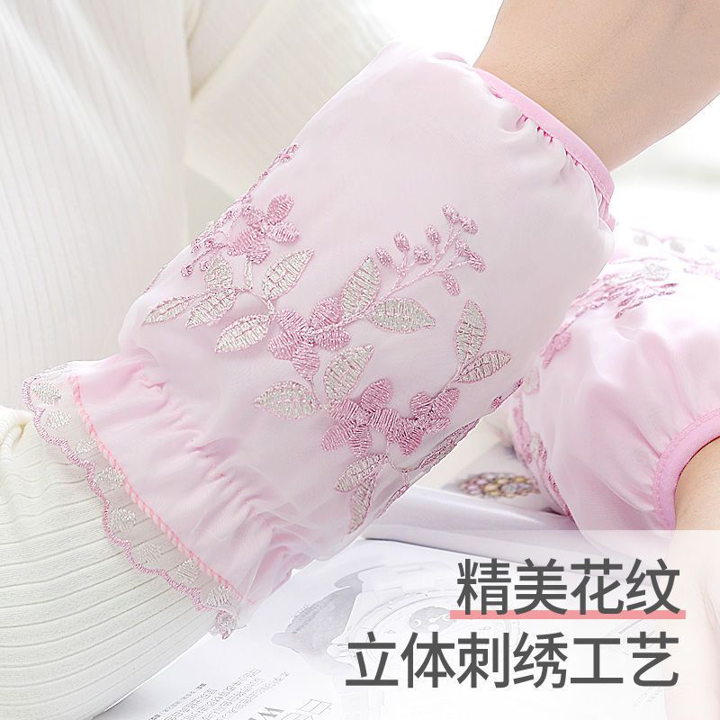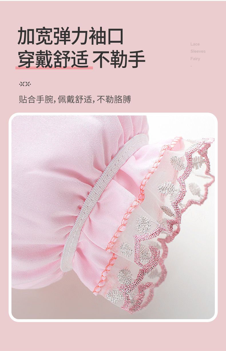 双层网纱蕾丝袖套女秋冬防脏套袖成人学生袖筒黑白米色透明护袖头