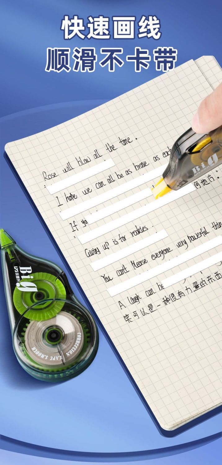乐普升修正带高颜值大容量改正带学生专用好用顺滑不断带涂改带