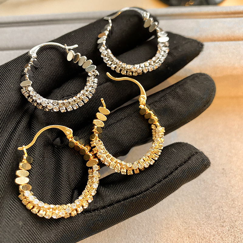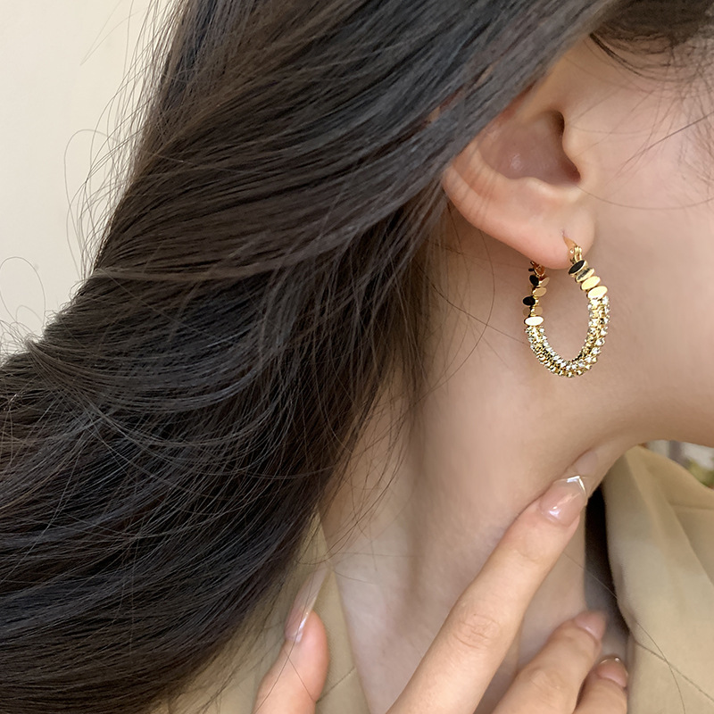 轻奢小众高级感简约圆圈耳圈耳钉真金电镀碎银几两微镶锆石耳环女