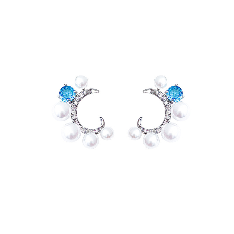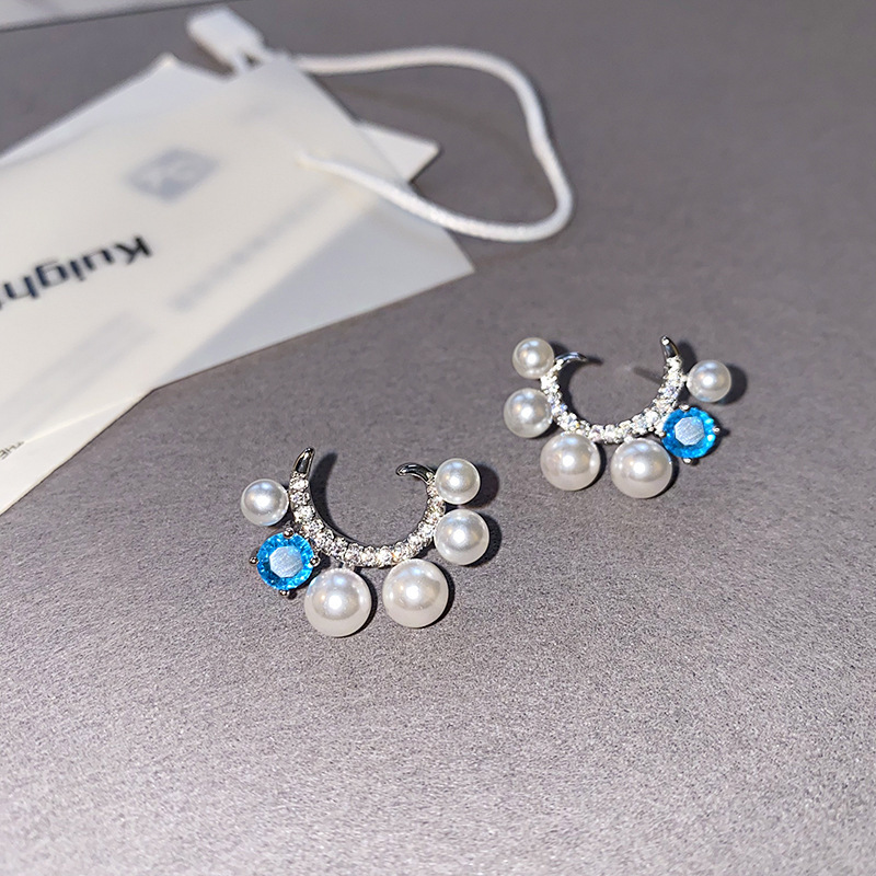 饰品小众高级感925纯银针珍珠耳钉真金电镀精致微镶锆石C形耳环女