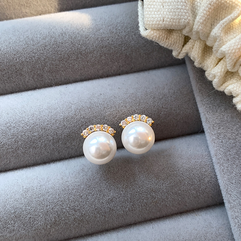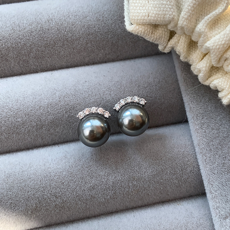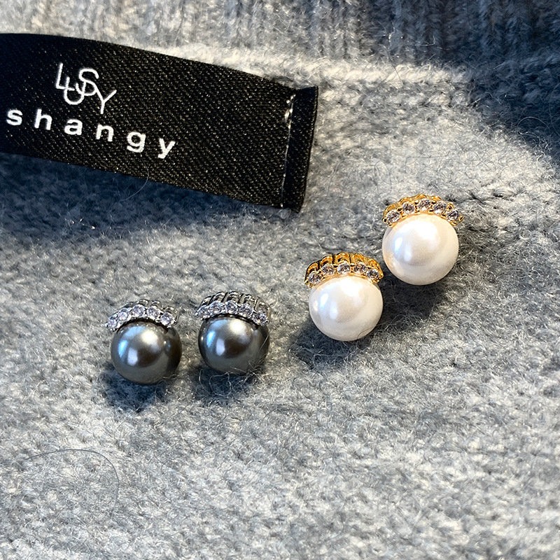 精致微镶锆石耳环简约耳饰品S925纯银针施家澳白真多麻珍珠耳钉女