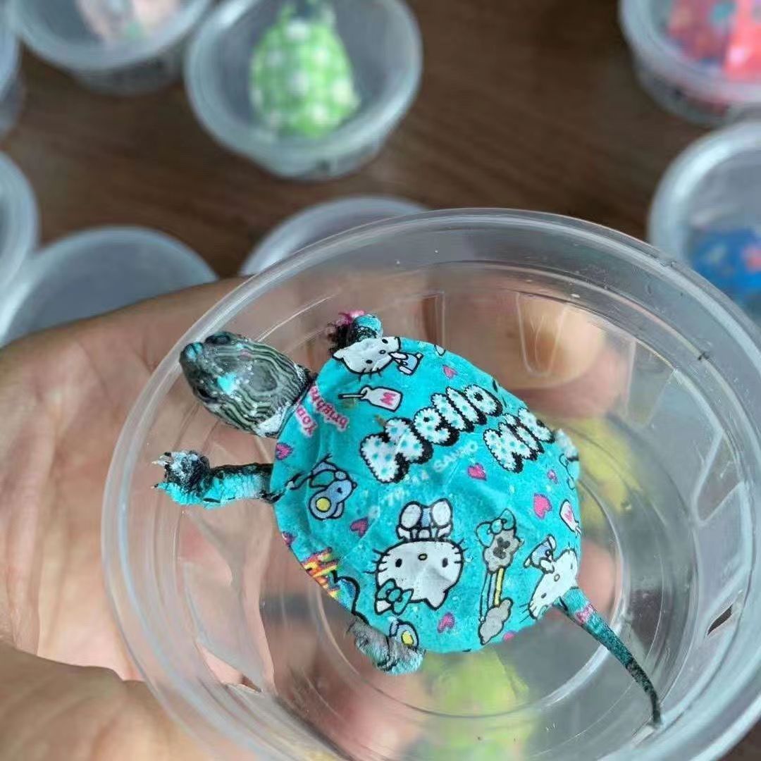 七彩彩色小乌龟彩龟宠物卡通乌龟摆地摊100只可爱活物观赏龟批发