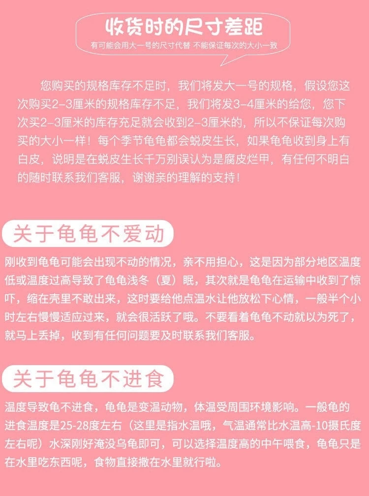 | brazil color turtle 100 (without) box turtle food(巴西彩龟100只(不带)盒子龟粮) | USD $27.57 | 999999 piece available |