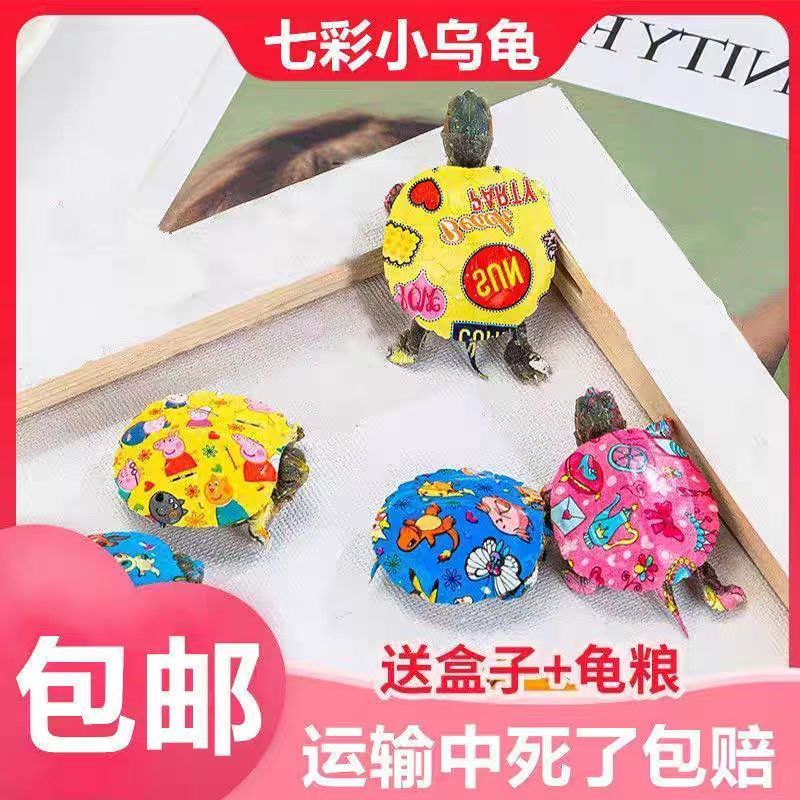 网红七彩卡通小乌龟宠物活体彩色炫彩观赏巴西龟地摊小彩龟批发