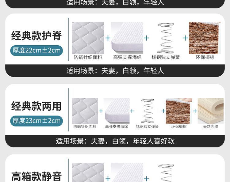 席梦思床垫独立弹簧床垫椰棕弹簧床垫加厚超厚型卧室出租屋弹簧垫