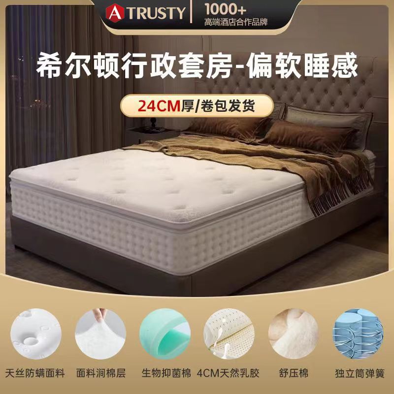 ATRUSTY希尔顿五星级酒店乳胶床垫1.8超软席梦思独立弹簧30CM超厚