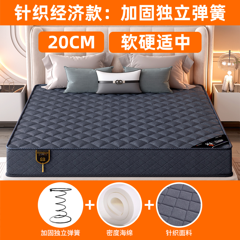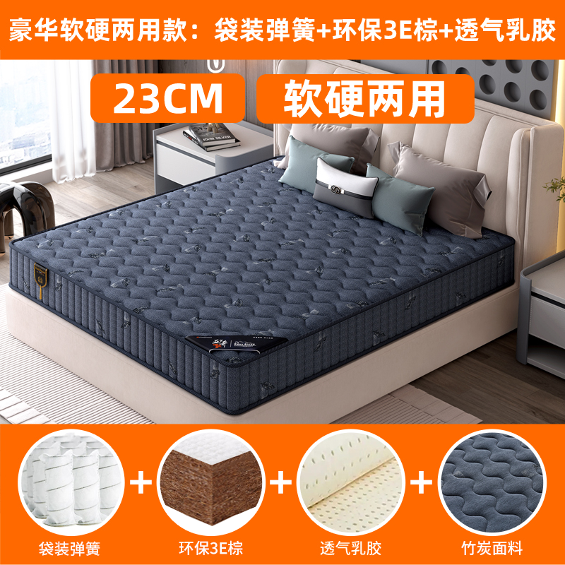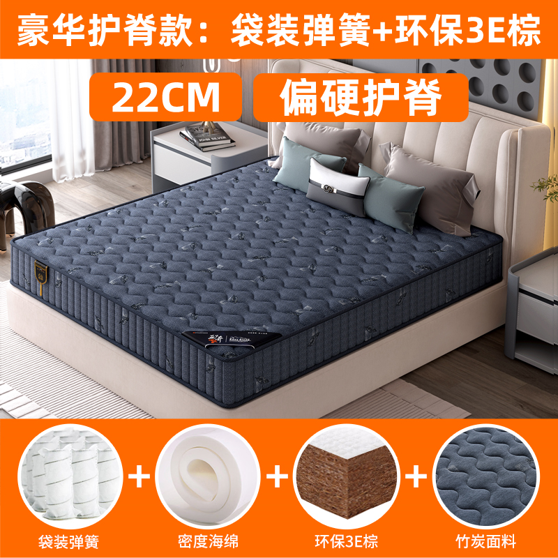 弹簧床垫20cm厚双人1.5m1.8米酒店家用乳胶软垫椰棕硬席梦思床垫