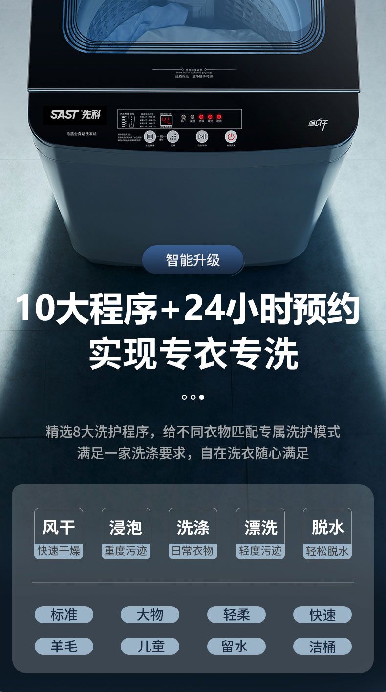 SAST/先科全自动洗衣机大容量10/15KG家用宿舍迷你洗脱一体烘干机