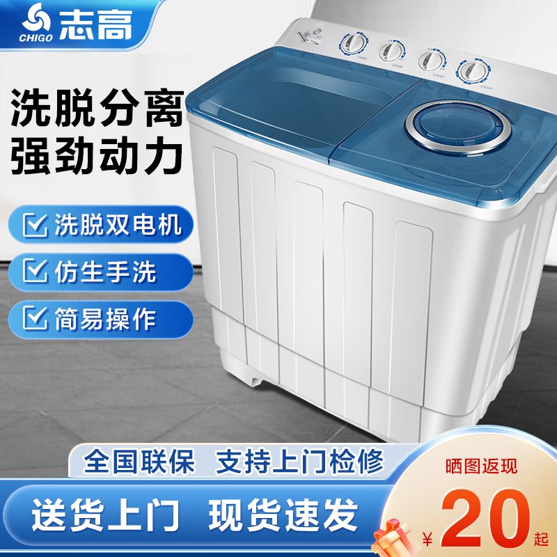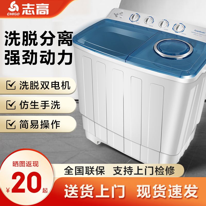 志高半自动洗衣机家用大容量双缸双桶双筒宿舍波轮小型迷你带甩干