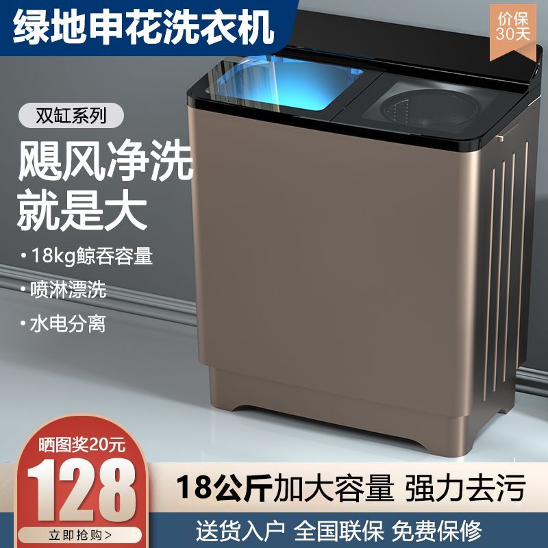 绿地申花双桶半全自动洗衣机大容量家用双缸双桶筒小型甩干