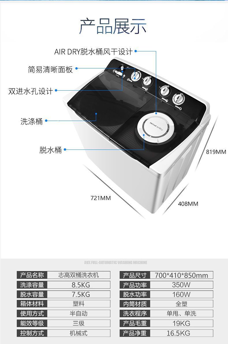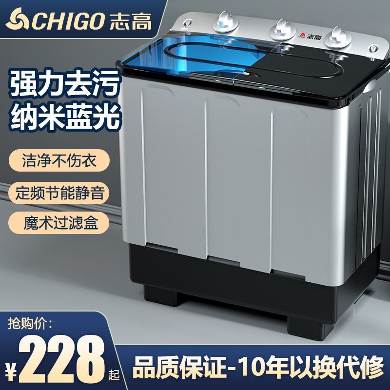 志高半自动洗衣机大容量家用双缸双桶筒老式波轮小型甩干