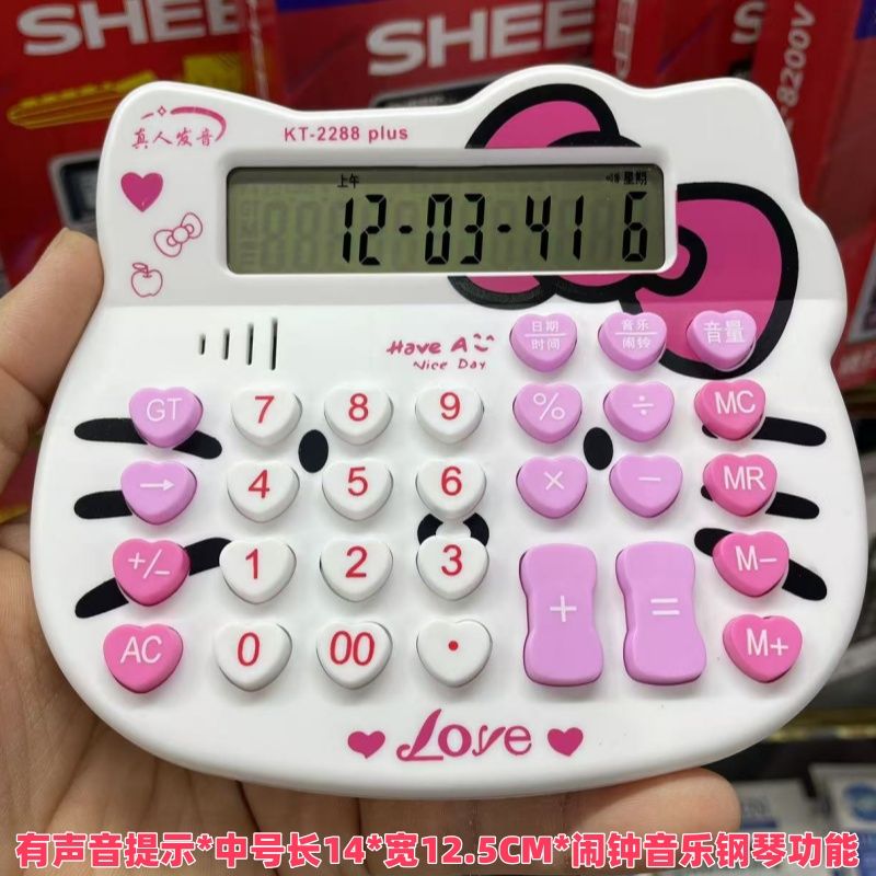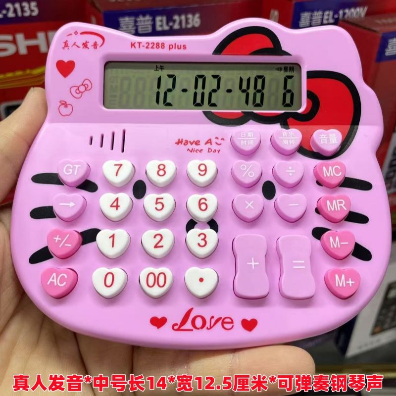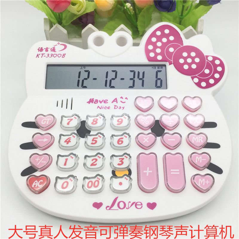 猫头有声音可弹奏钢琴网红抖音发音计算机粉色可爱女生专用计算器
