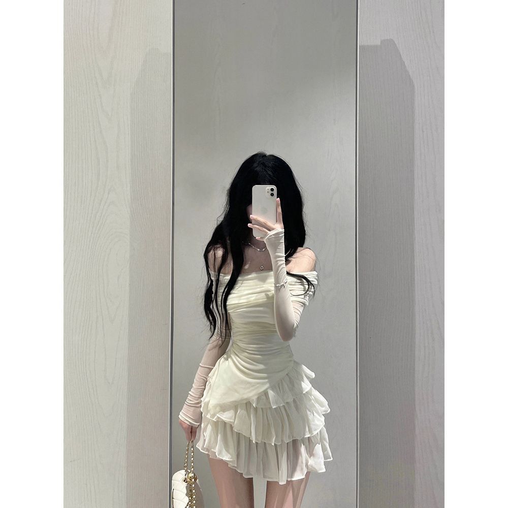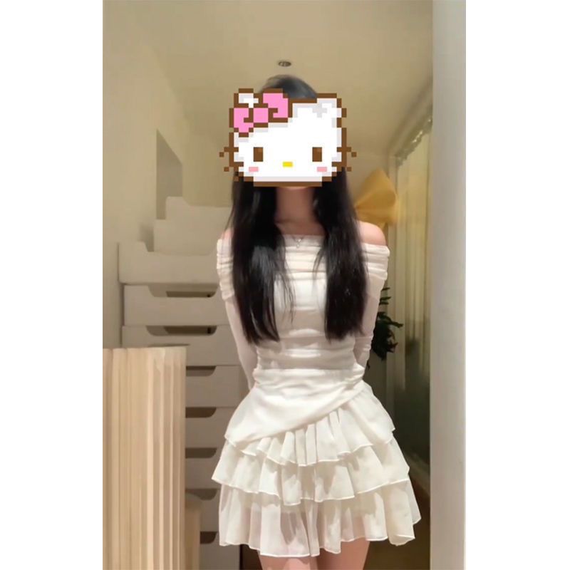 纯欲香肩露套装修身上衣半身裙女一字夏装辣妹蛋糕纯欲风两件套