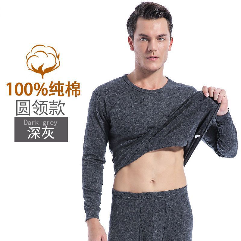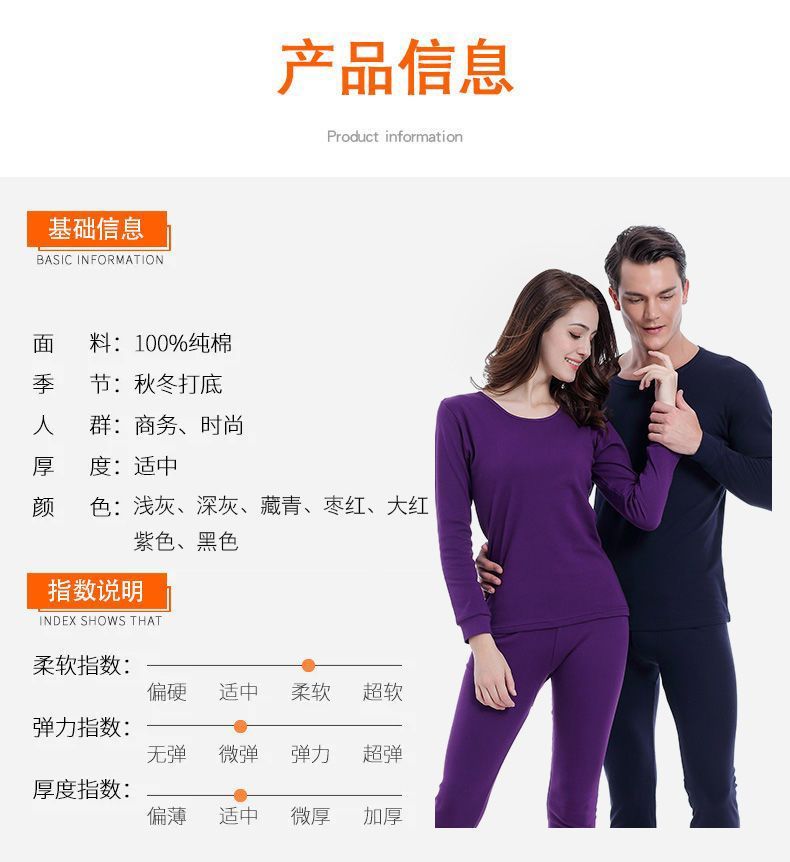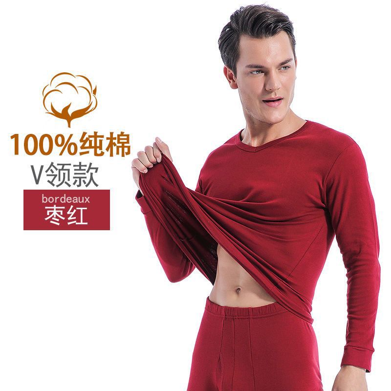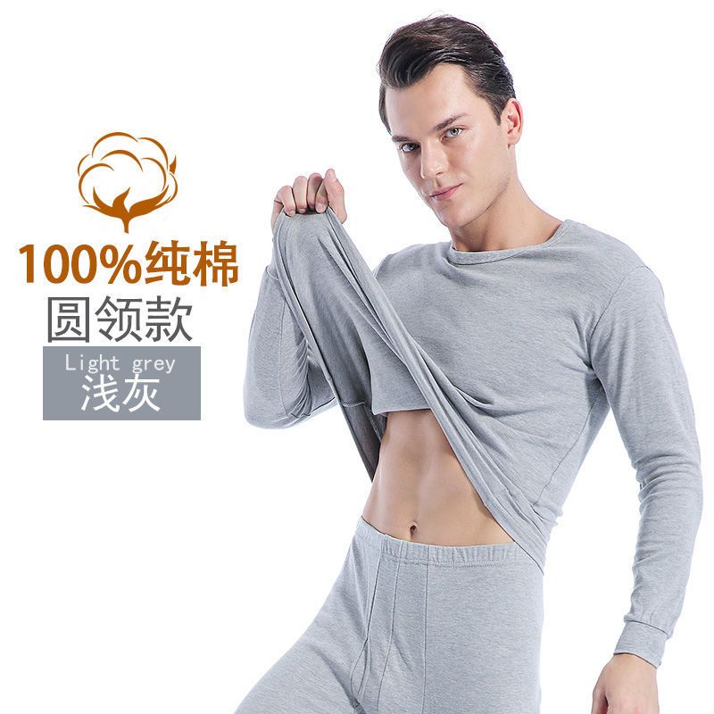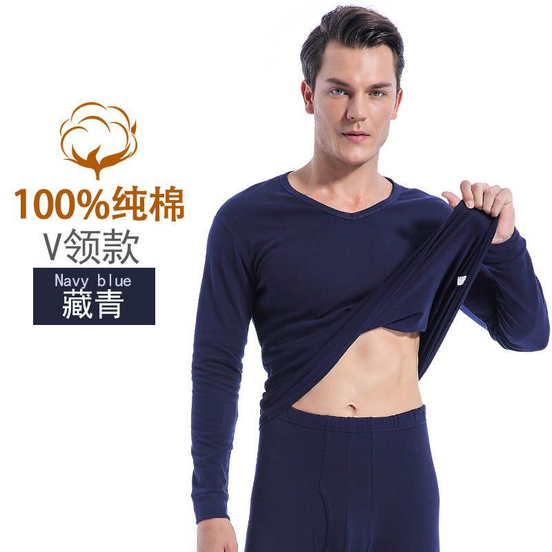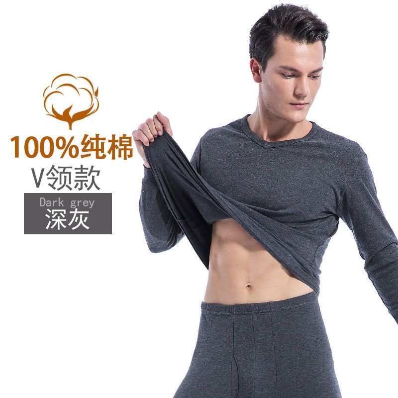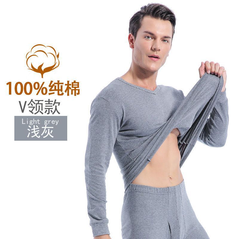 秋衣秋裤男士纯棉内衣套装青年薄款女士全棉毛衫V领春冬季打底衫