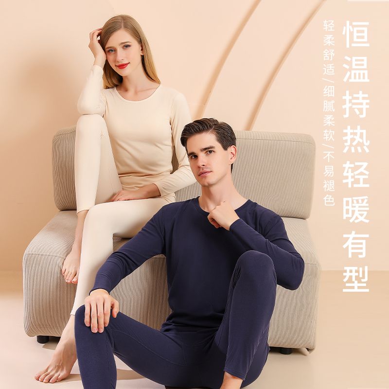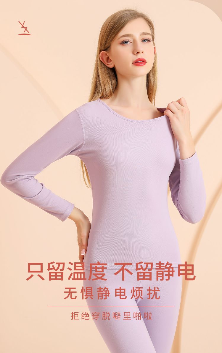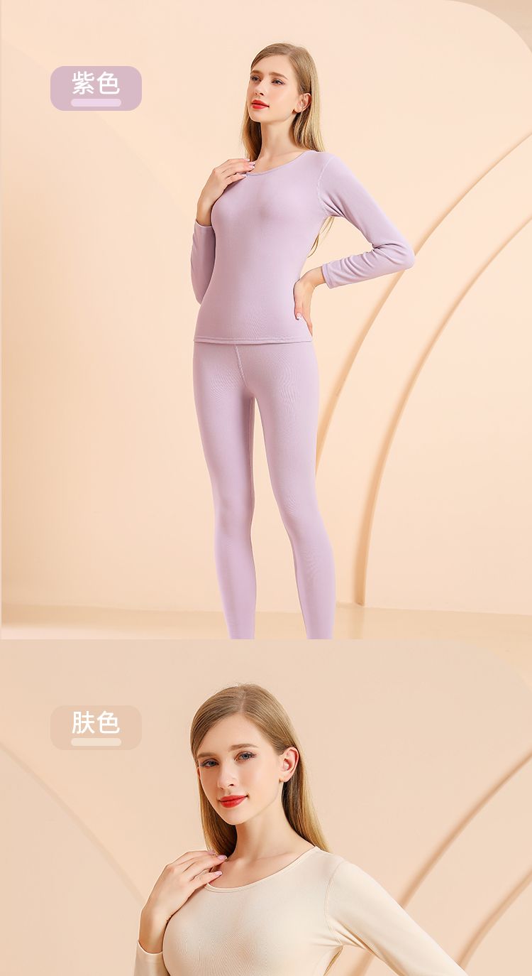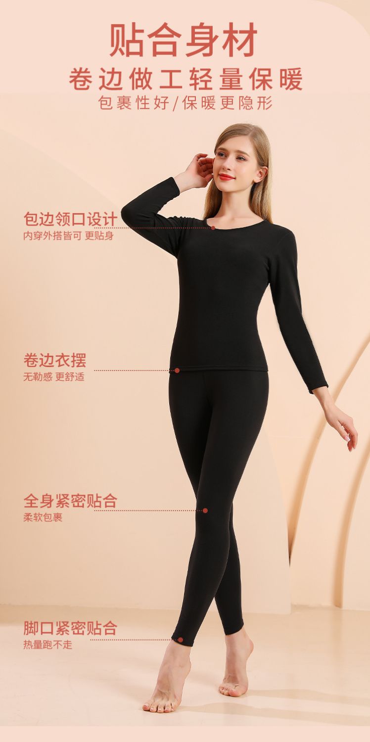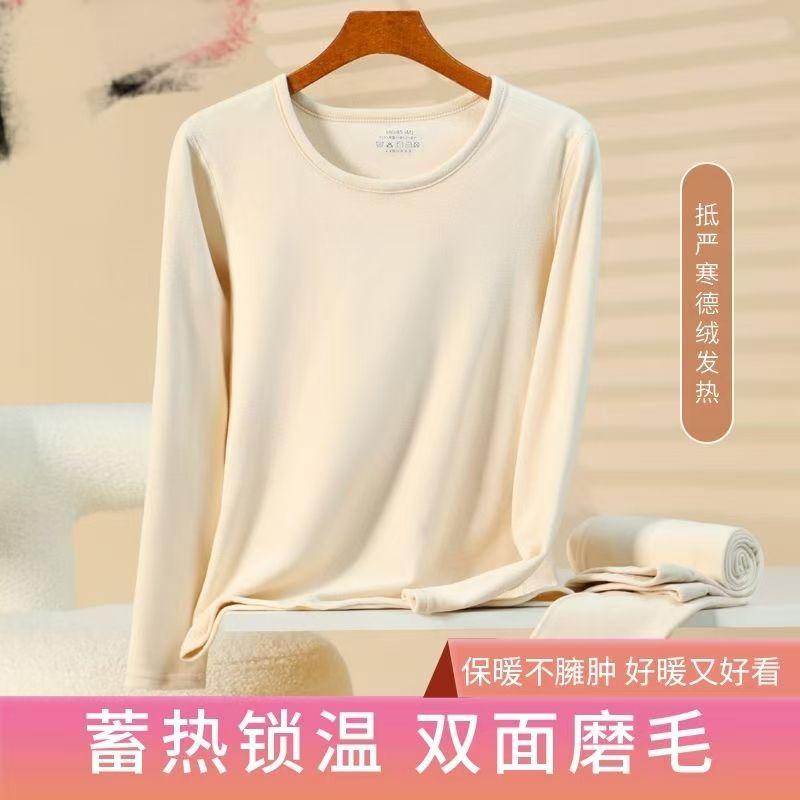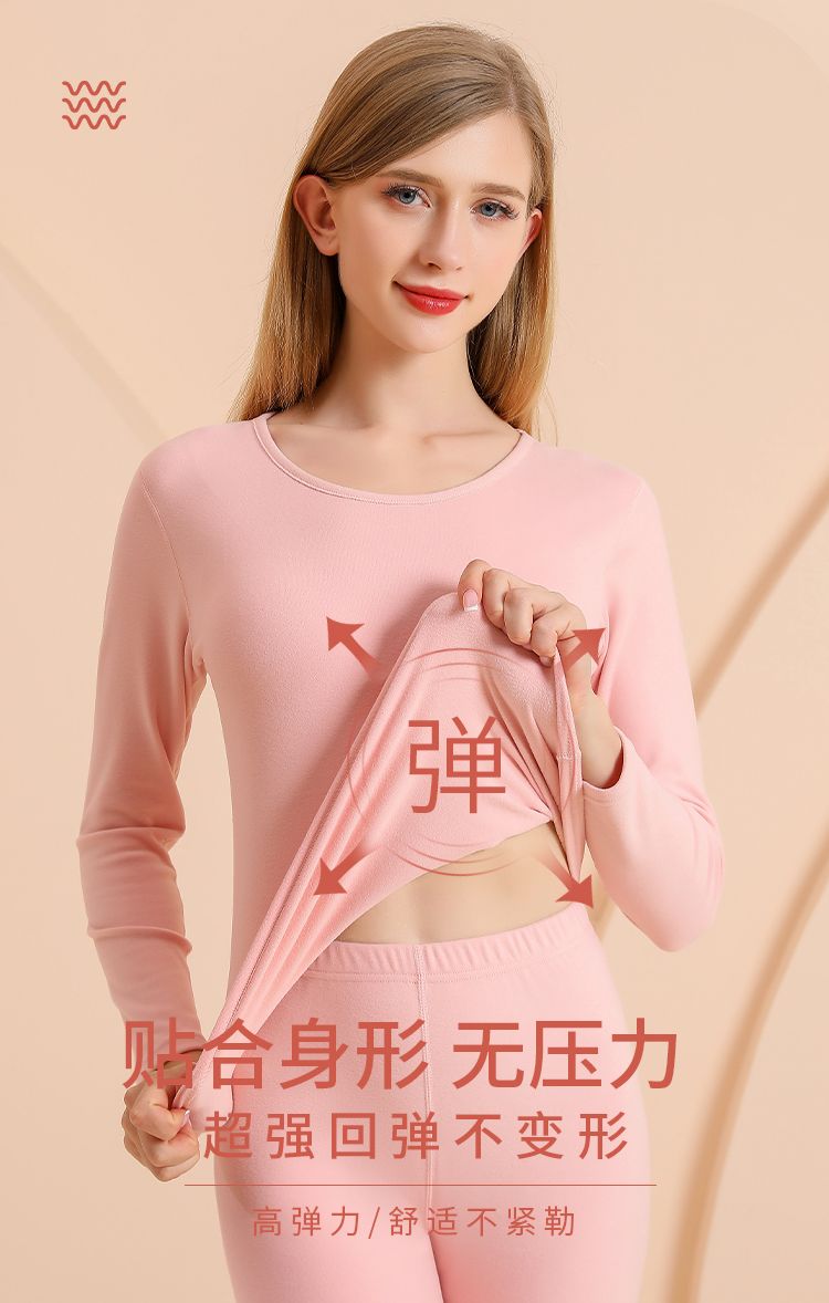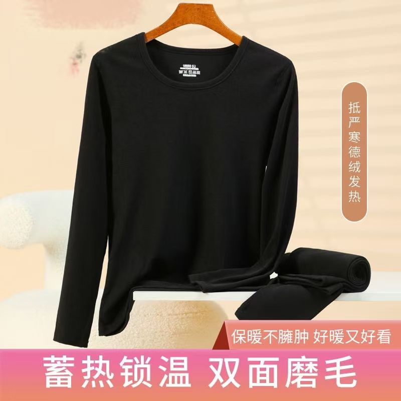 高档女士保暖内衣冬款德绒圆领秋衣秋裤内穿防寒打底套装