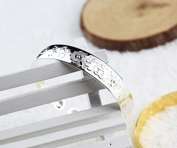 跑江湖摆地摊热卖苗银手镯批发 开口福字藏银纹银手环 倒插礼品