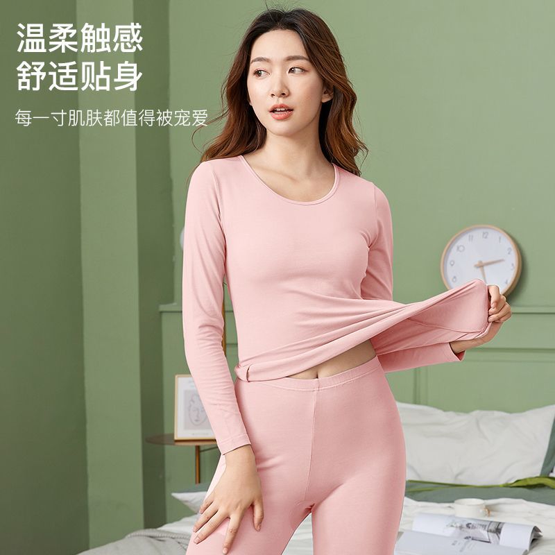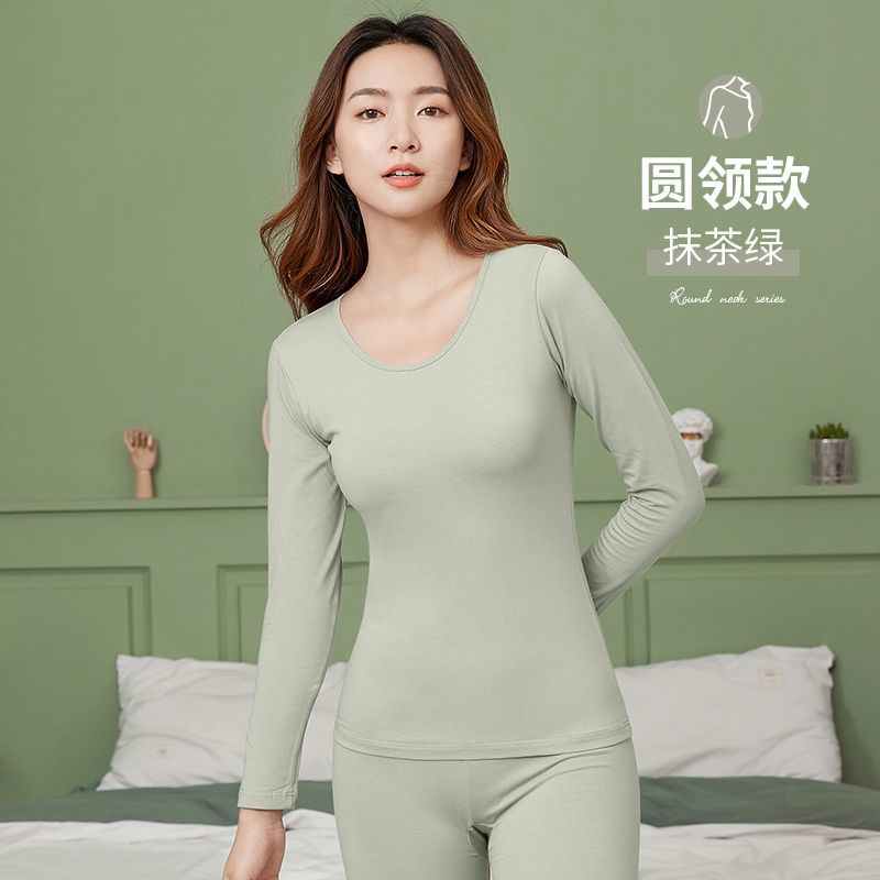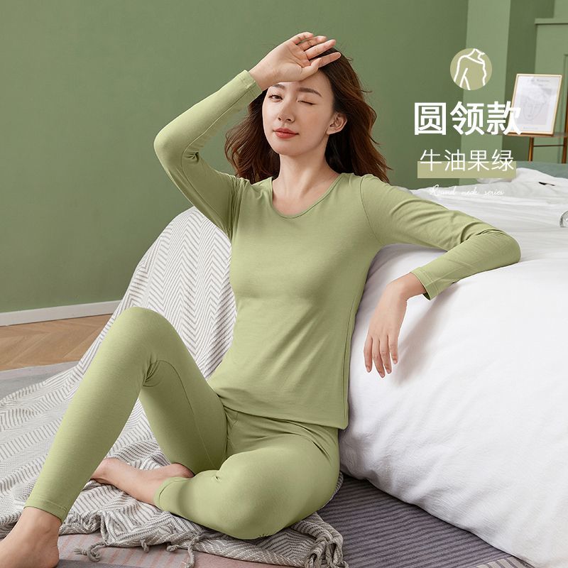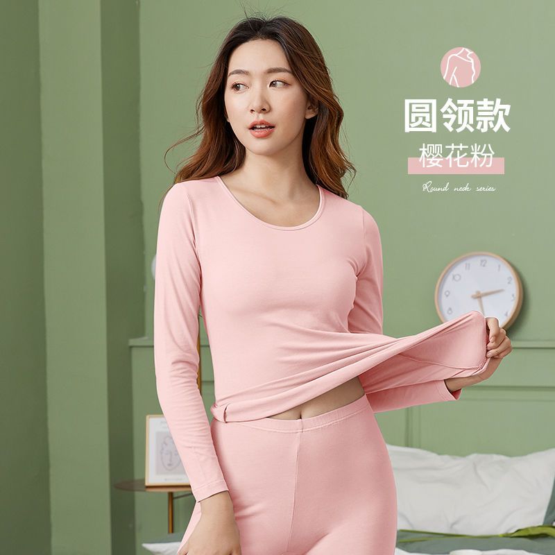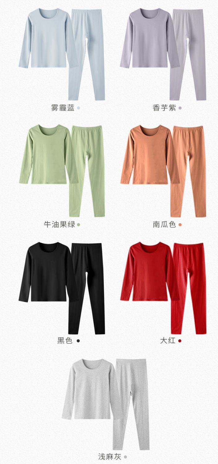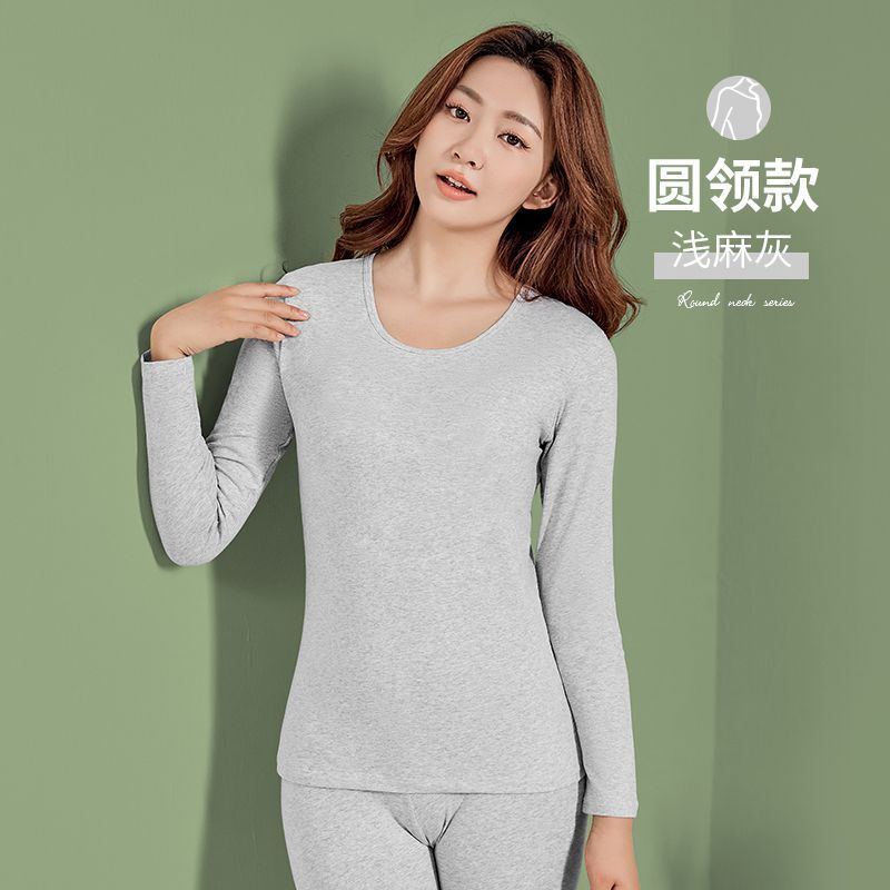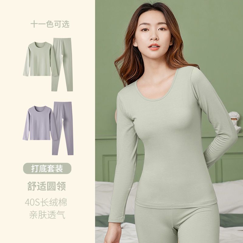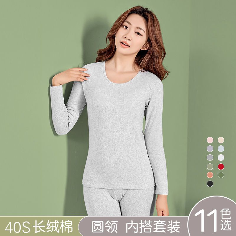 纯棉保暖内衣女套装女士打底衫纯色套装薄款修身秋冬衣秋裤