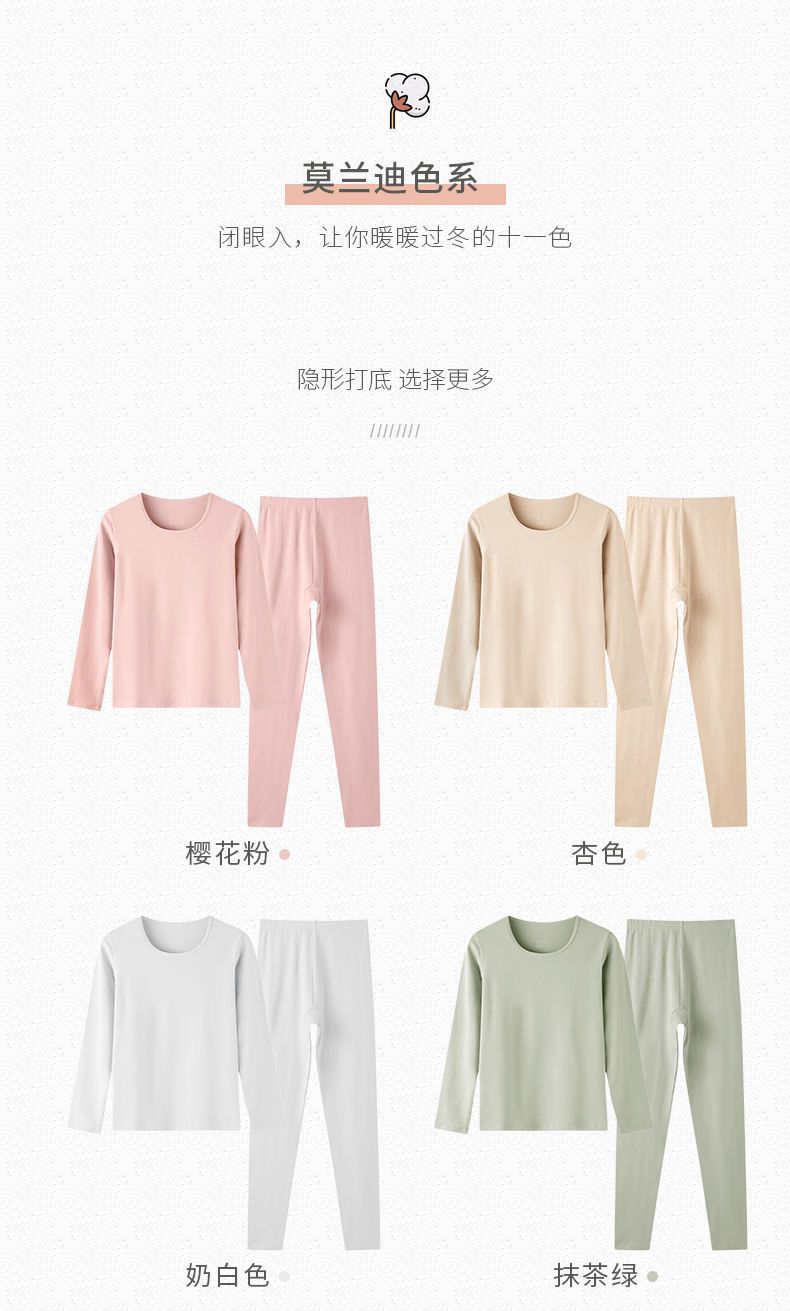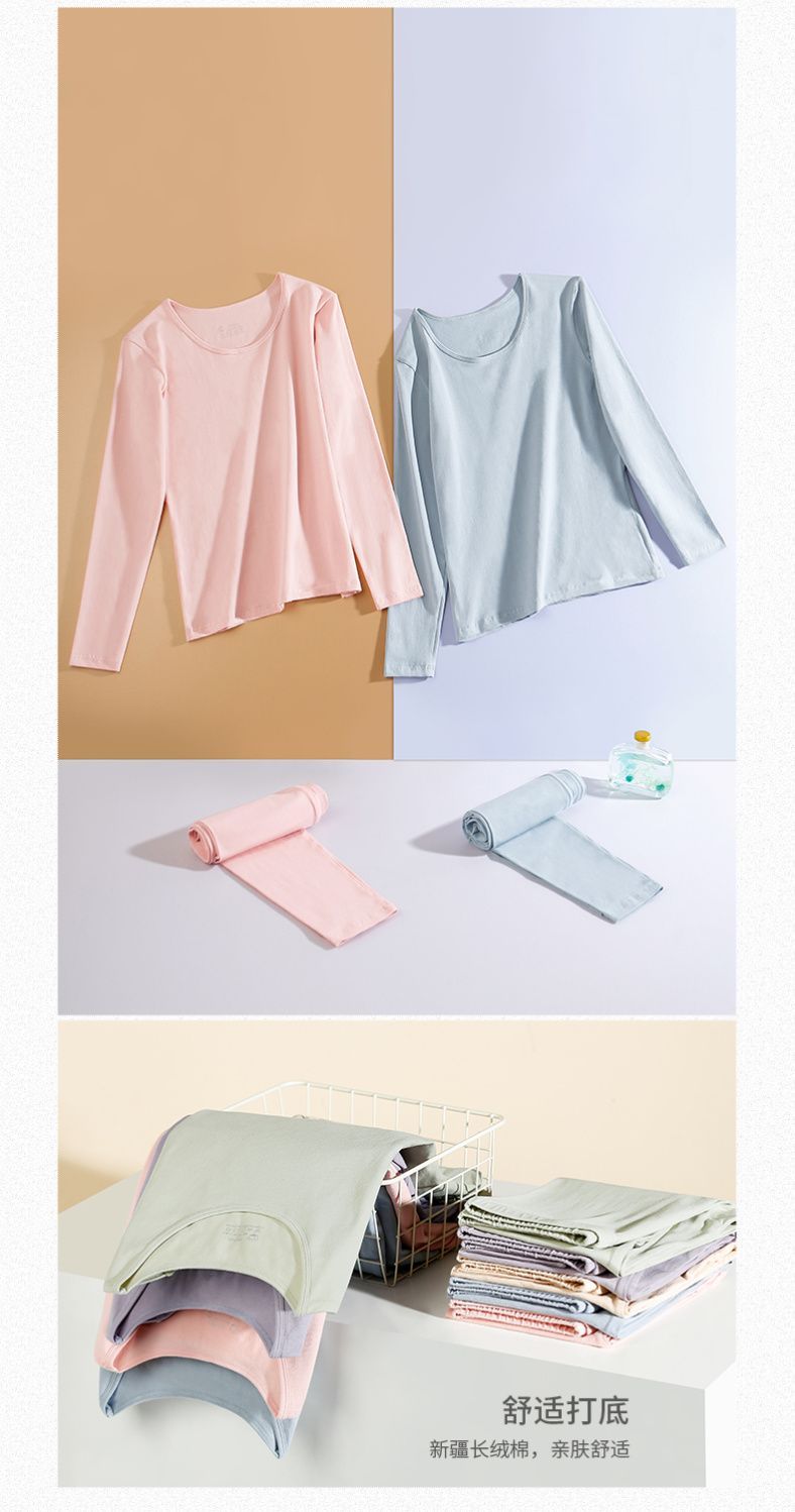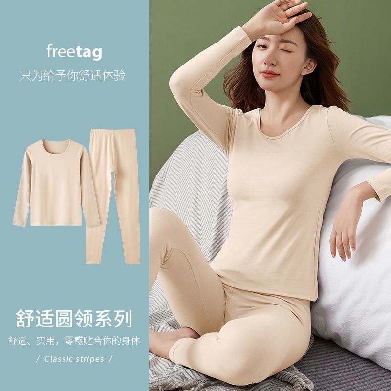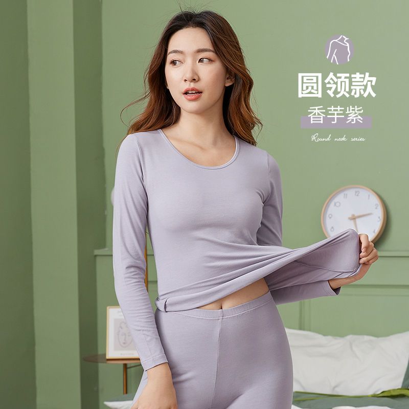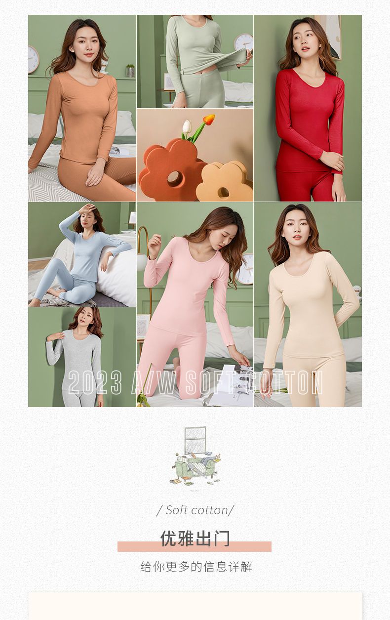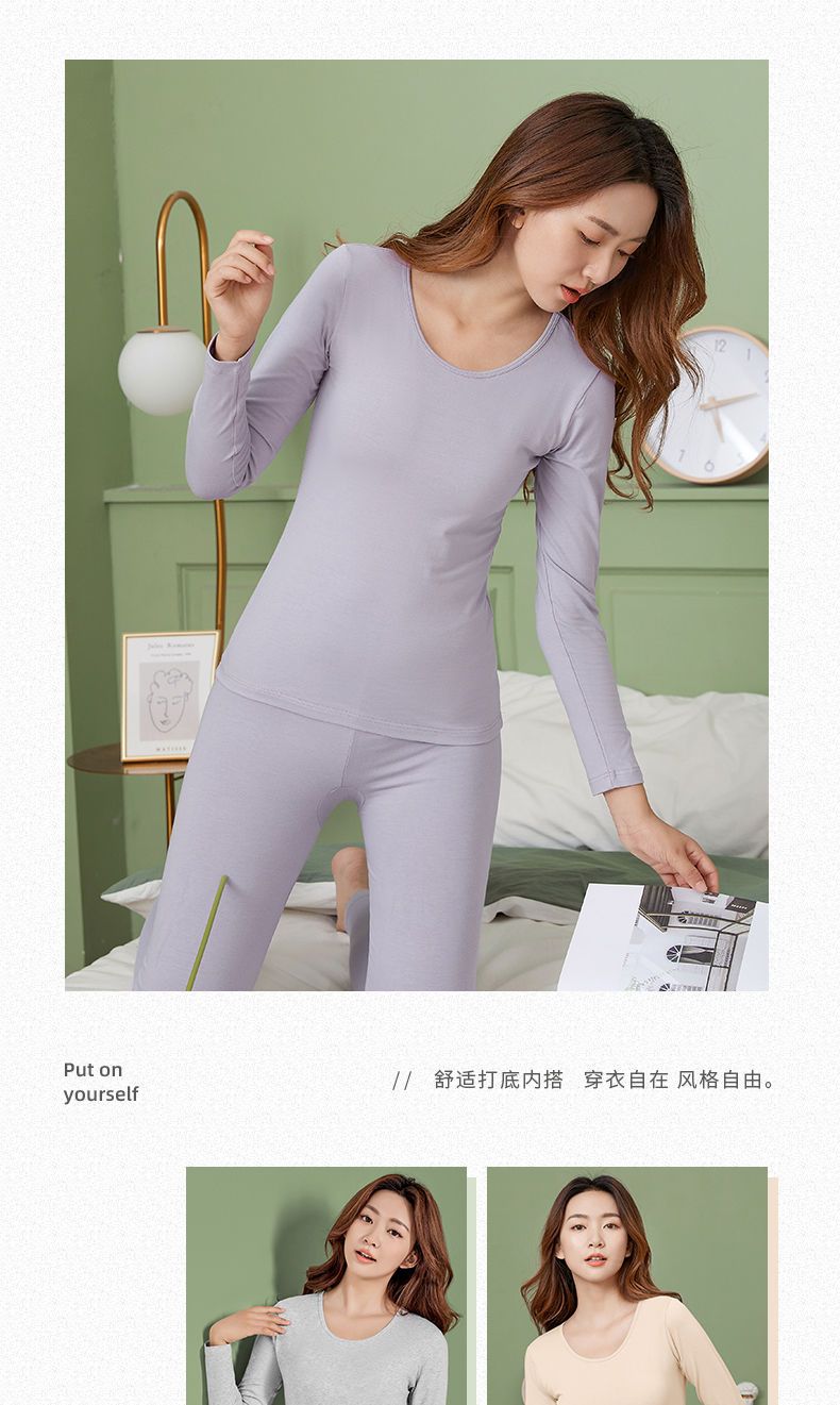 纯棉保暖内衣女套装女士打底衫纯色套装薄款修身秋冬衣秋裤