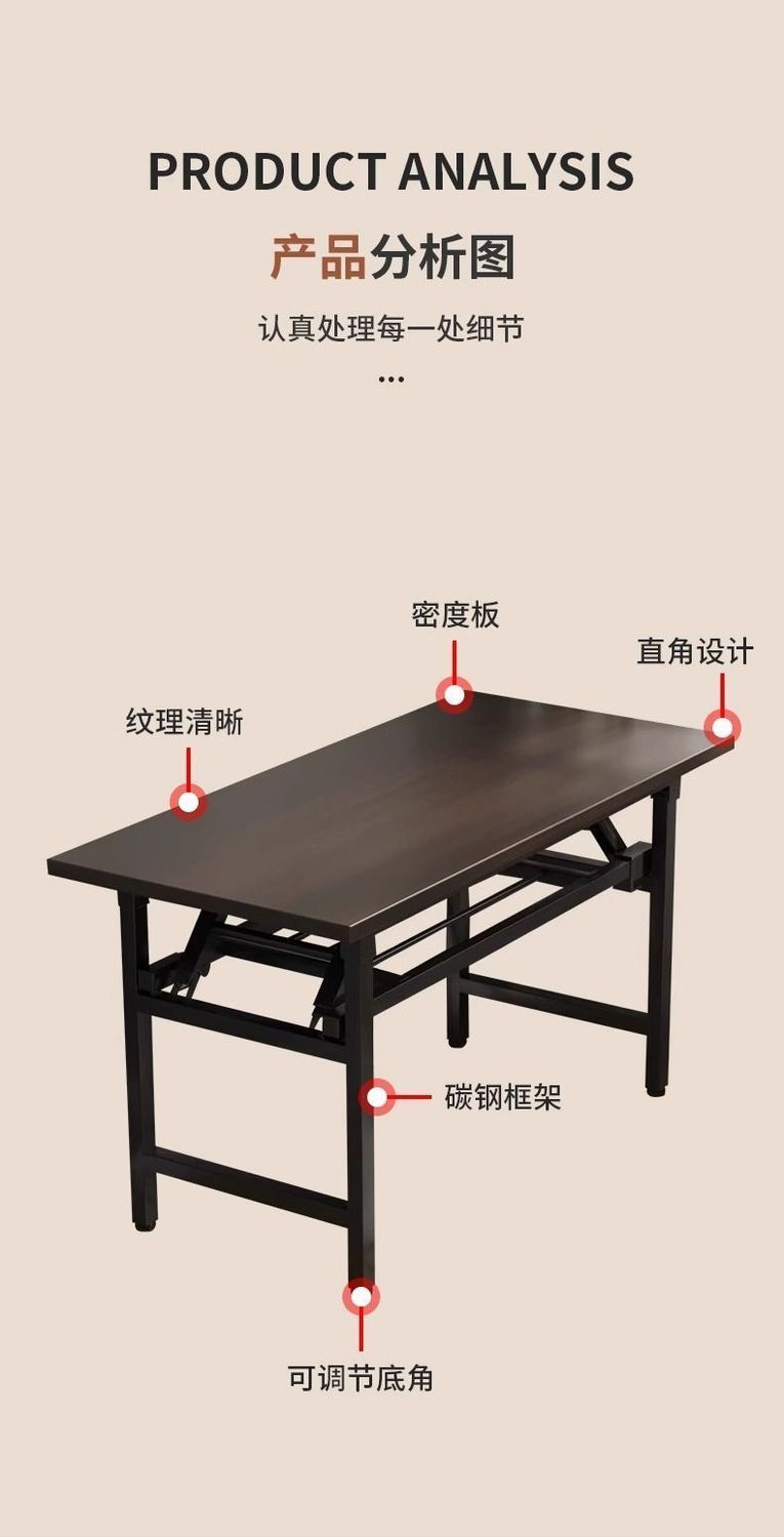 折叠桌子免安装便携学习桌折叠桌出租屋吃饭桌写字桌长方形培训桌