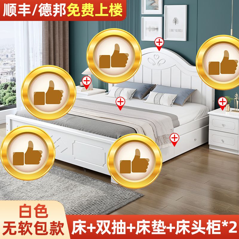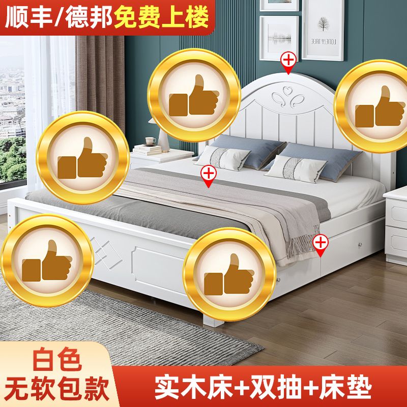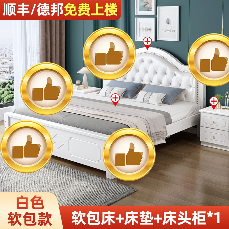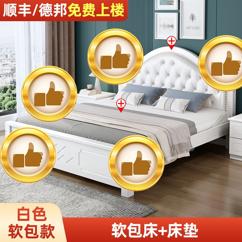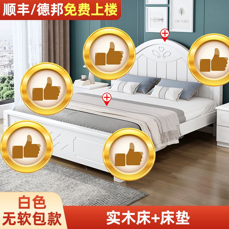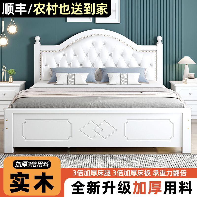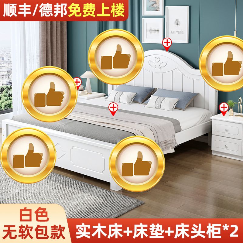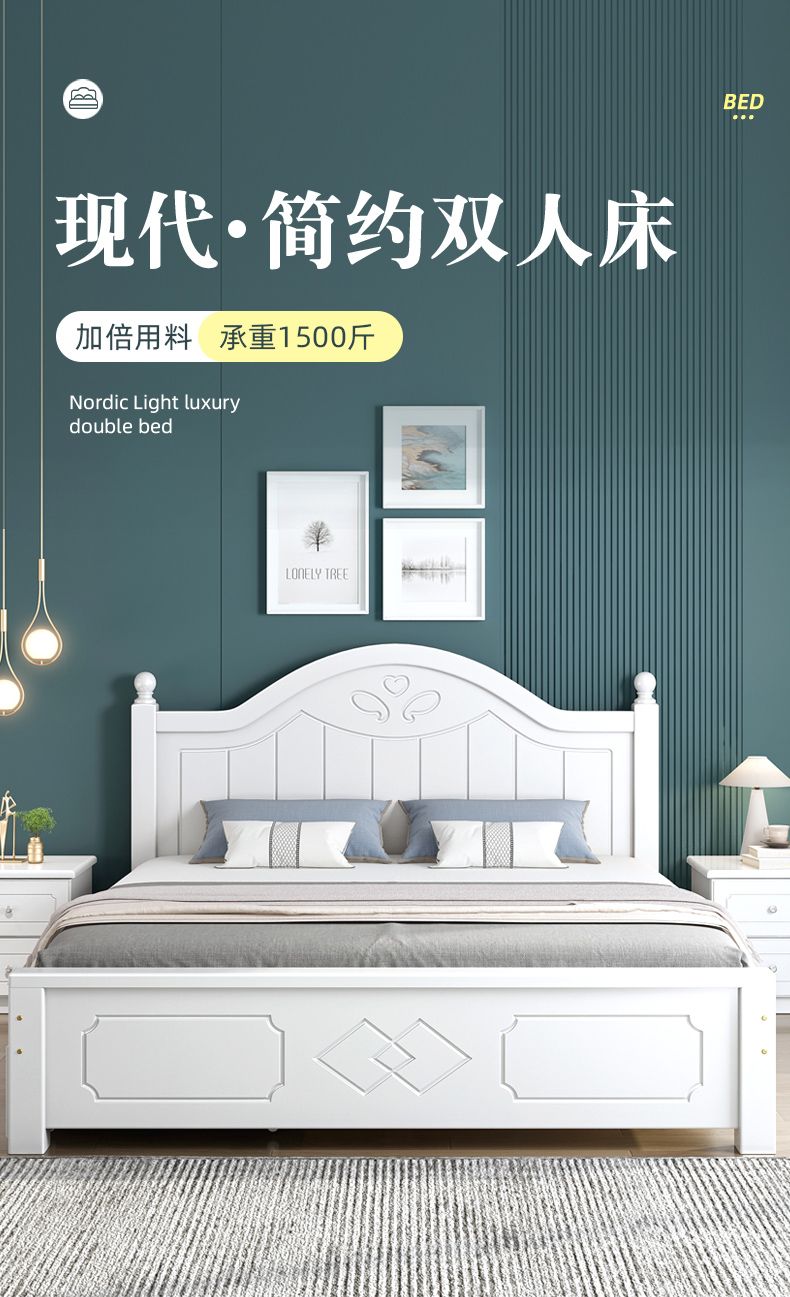 现代简约实木床1.8家用双人1.0M主卧出租房1.5经济型欧式单人大床
