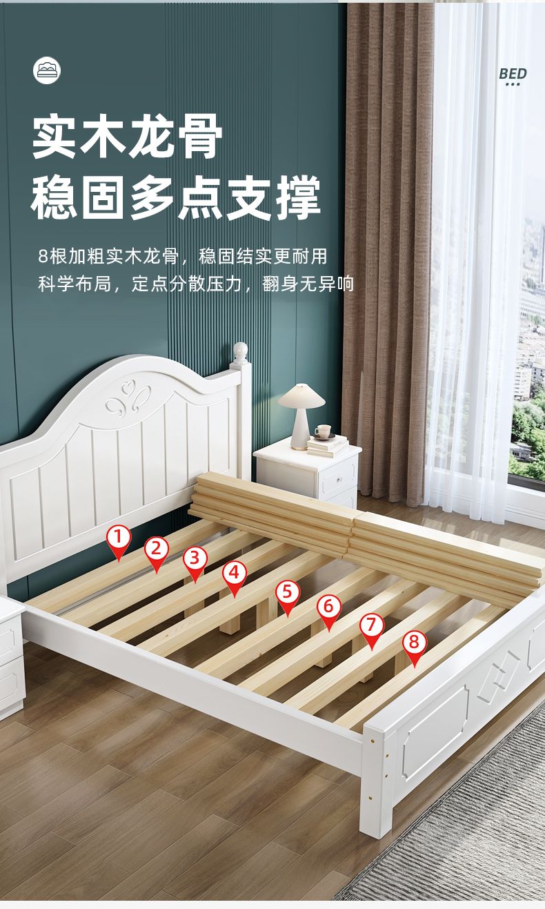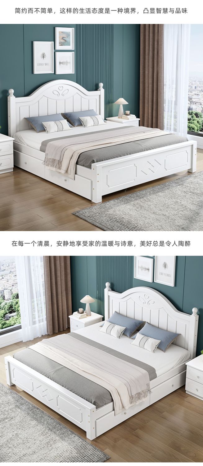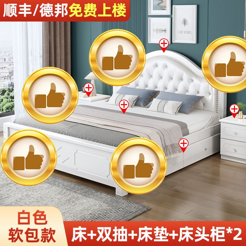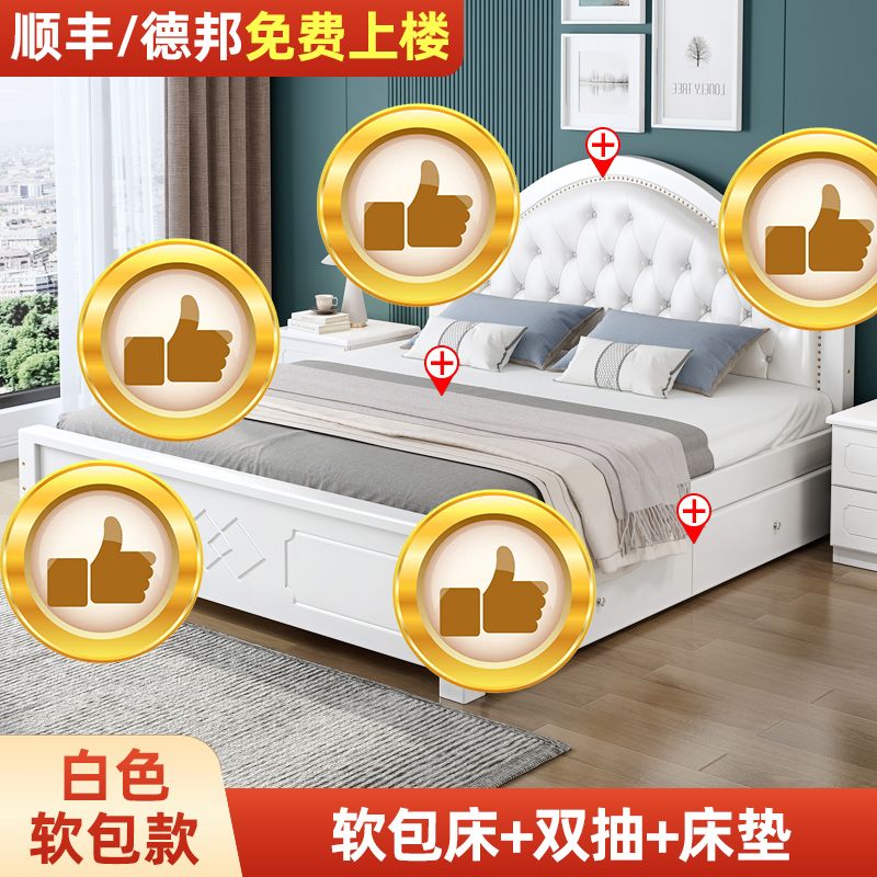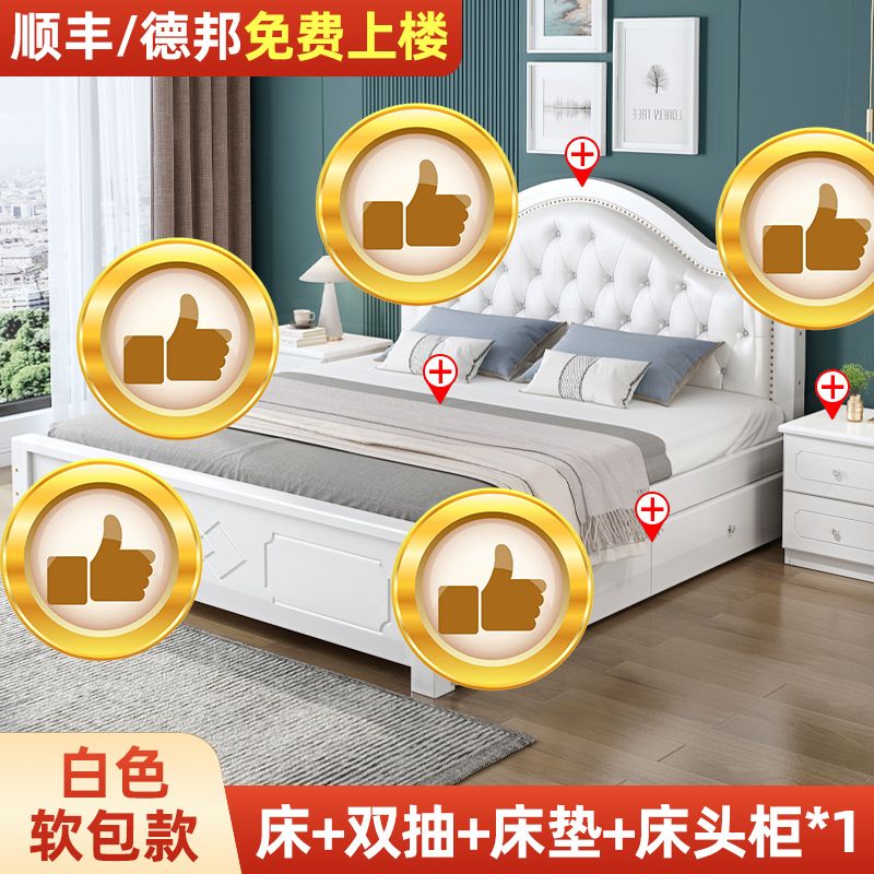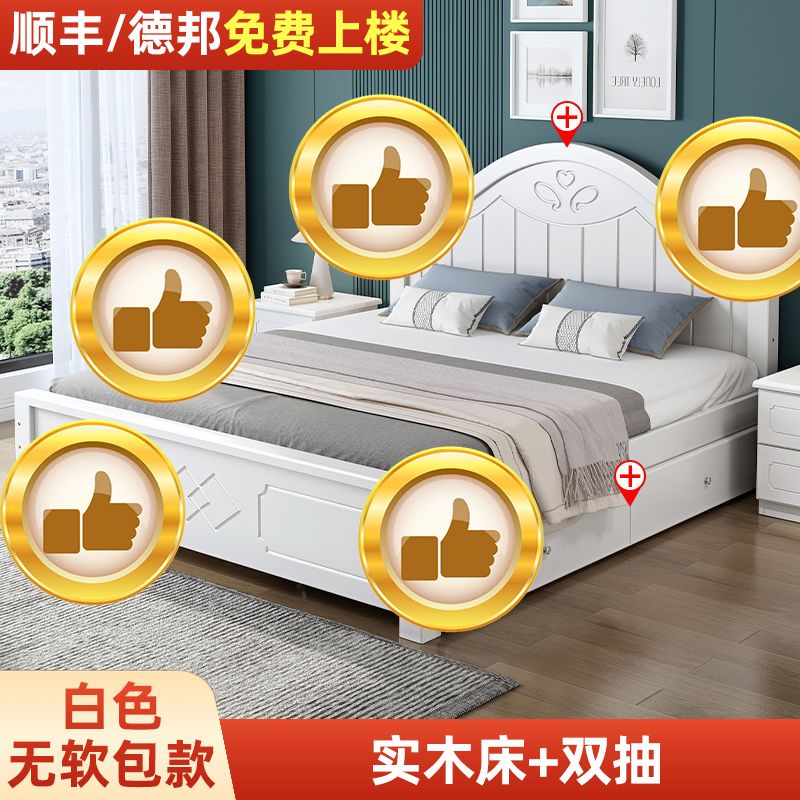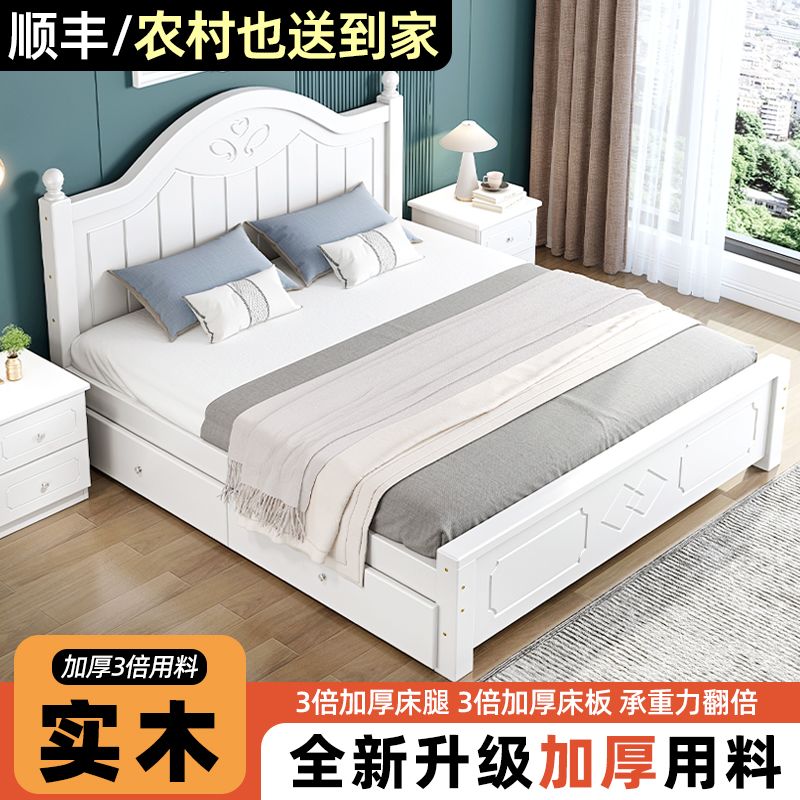 现代简约实木床1.8家用双人1.0M主卧出租房1.5经济型欧式单人大床