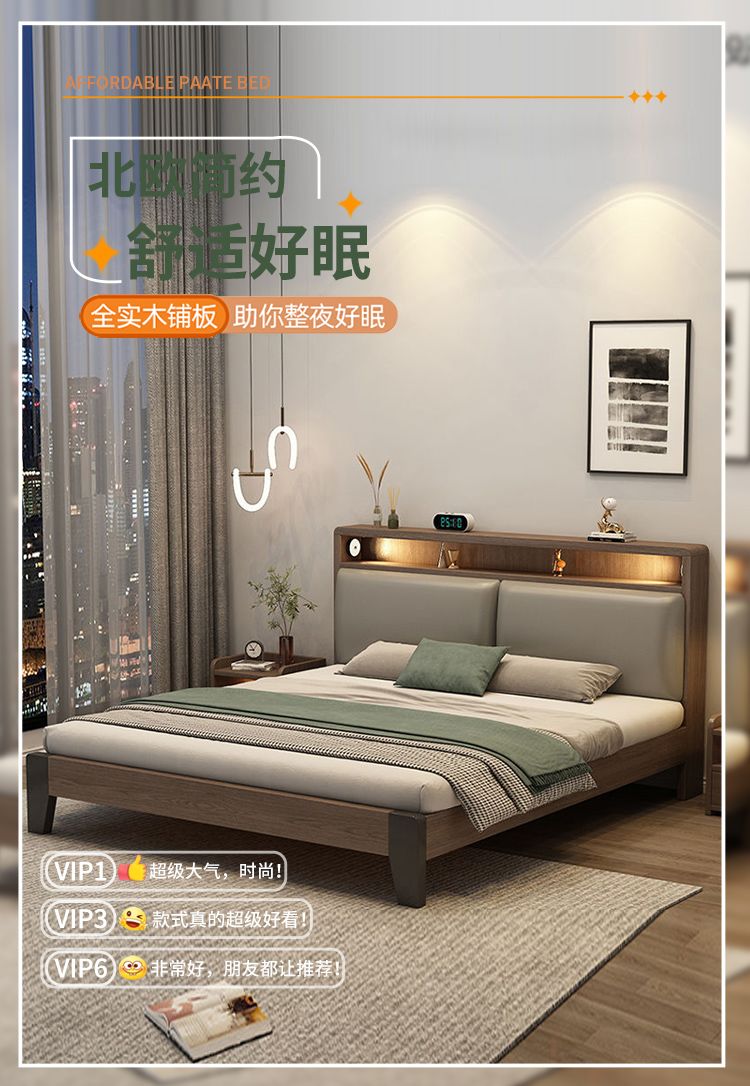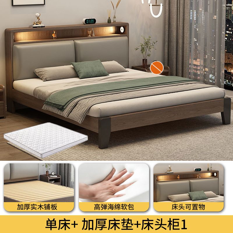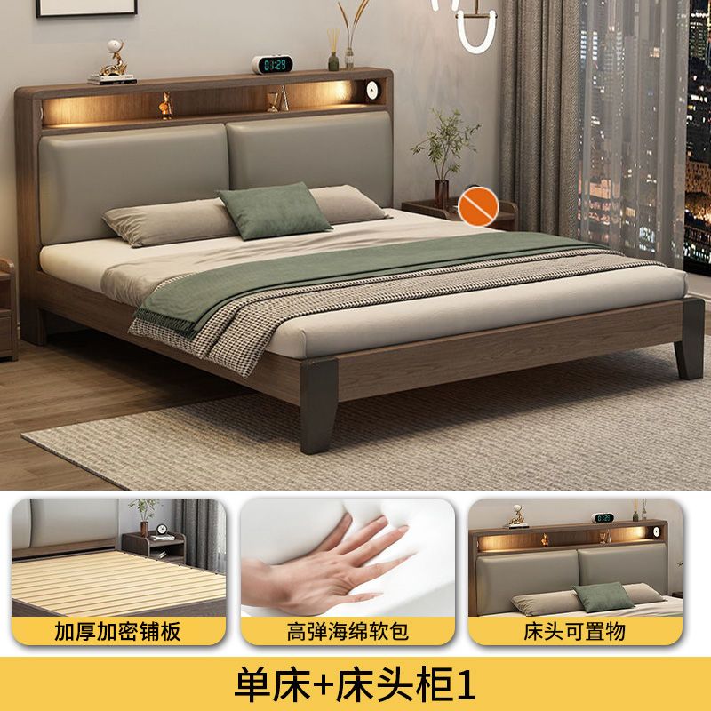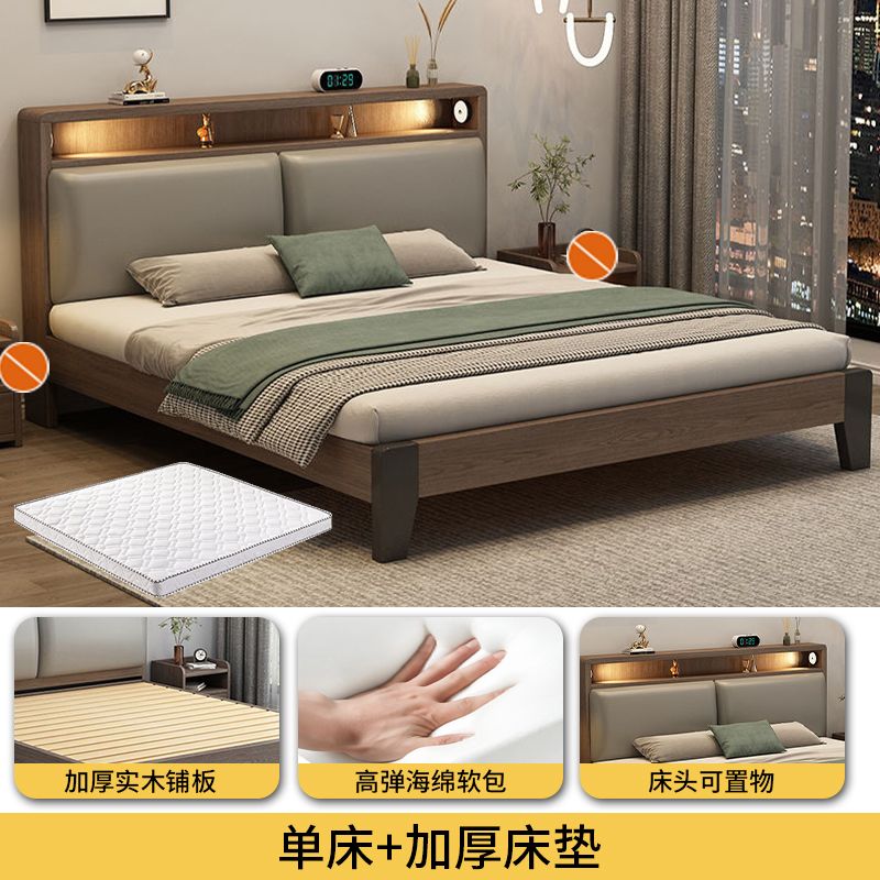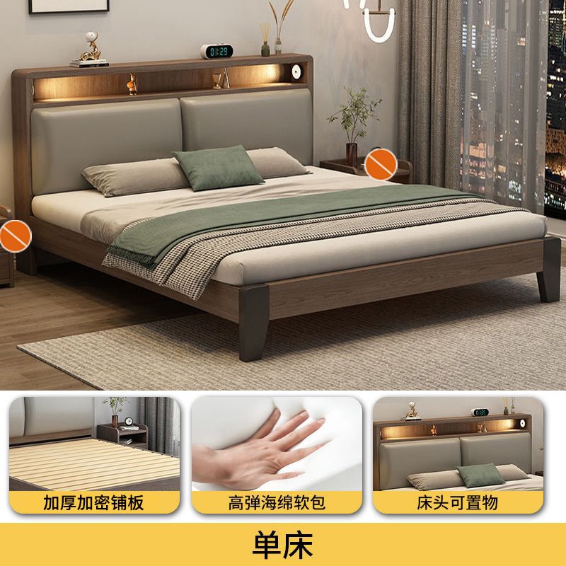 意式软包实木床双人1.8x2米主卧轻奢出租房1.5m单人床民宿1.2米